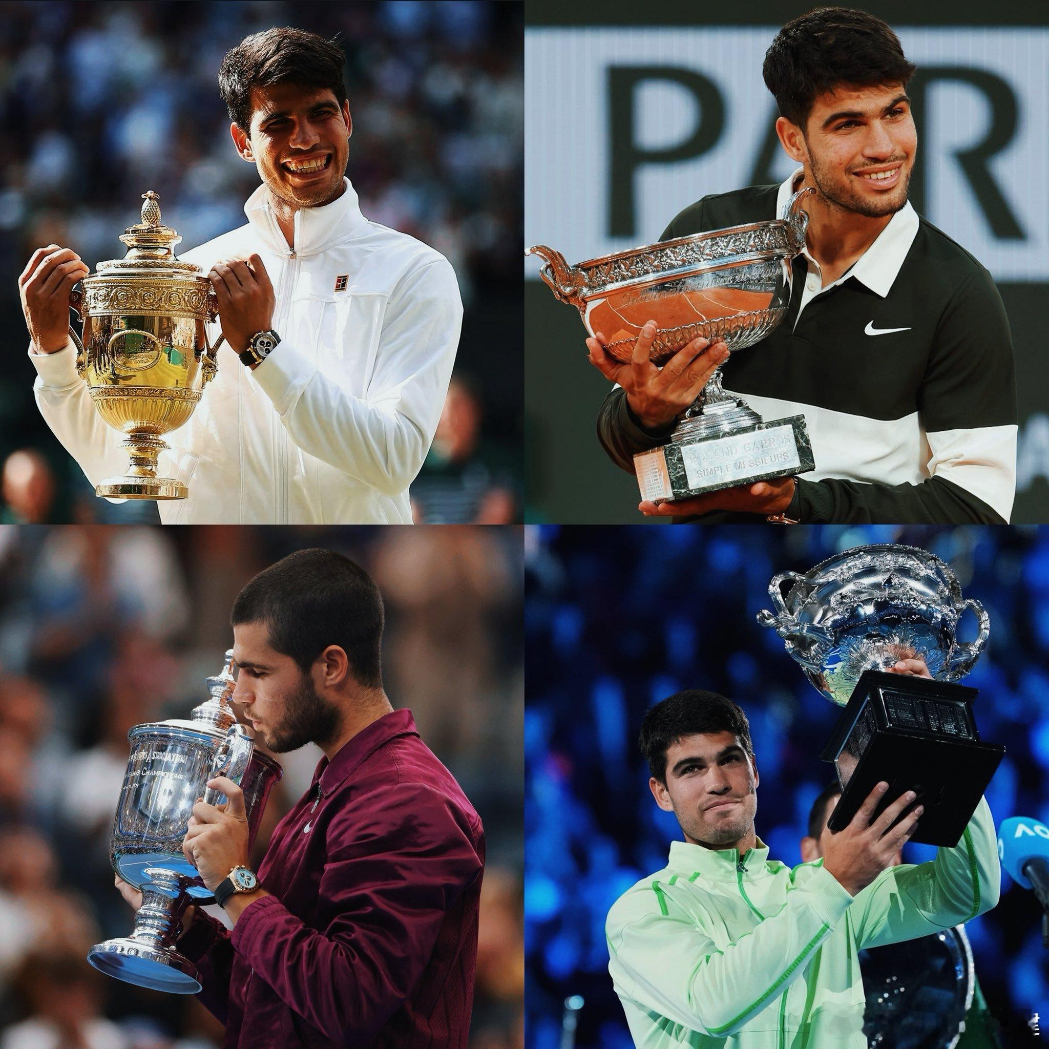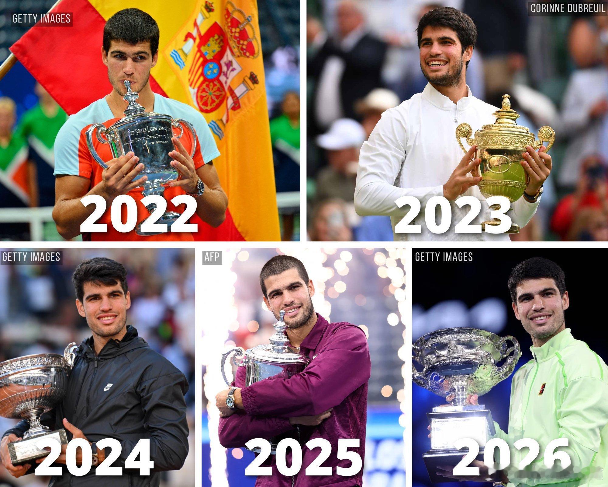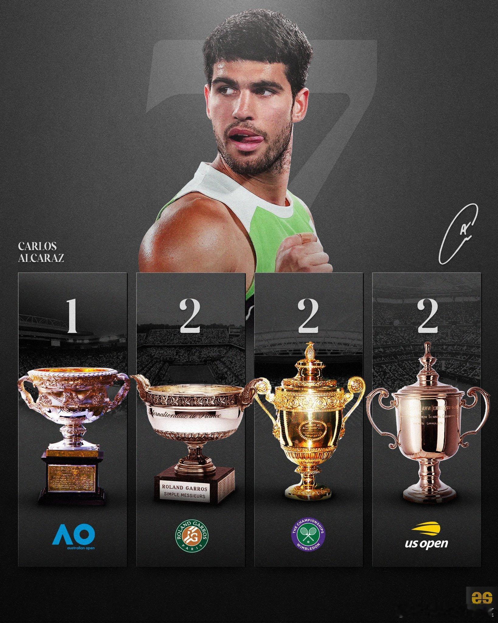 阿尔卡拉斯加入了公开赛时代十大历史巨星的讨论。🥇前3:三巨头(德约科维奇、费德勒、纳达尔)🥈第4-6:桑普拉斯、博格和拉沃尔🥉第7-10:阿加西、康纳斯、伦德尔,而阿尔卡拉斯已经开始在这个最后组别进入讨论,这个组别是那些拥有7+个大满贯和排名统治力的选手。阿卡7个大满贯和2个赛季年终世界第一,并且有70周世界第一。在世界第一排名时间上落后于伦德尔和康纳斯,但拥有像阿加西一样的“生涯全满贯”。阿尔卡拉斯首夺澳网冠军阿尔卡拉斯实现全满贯