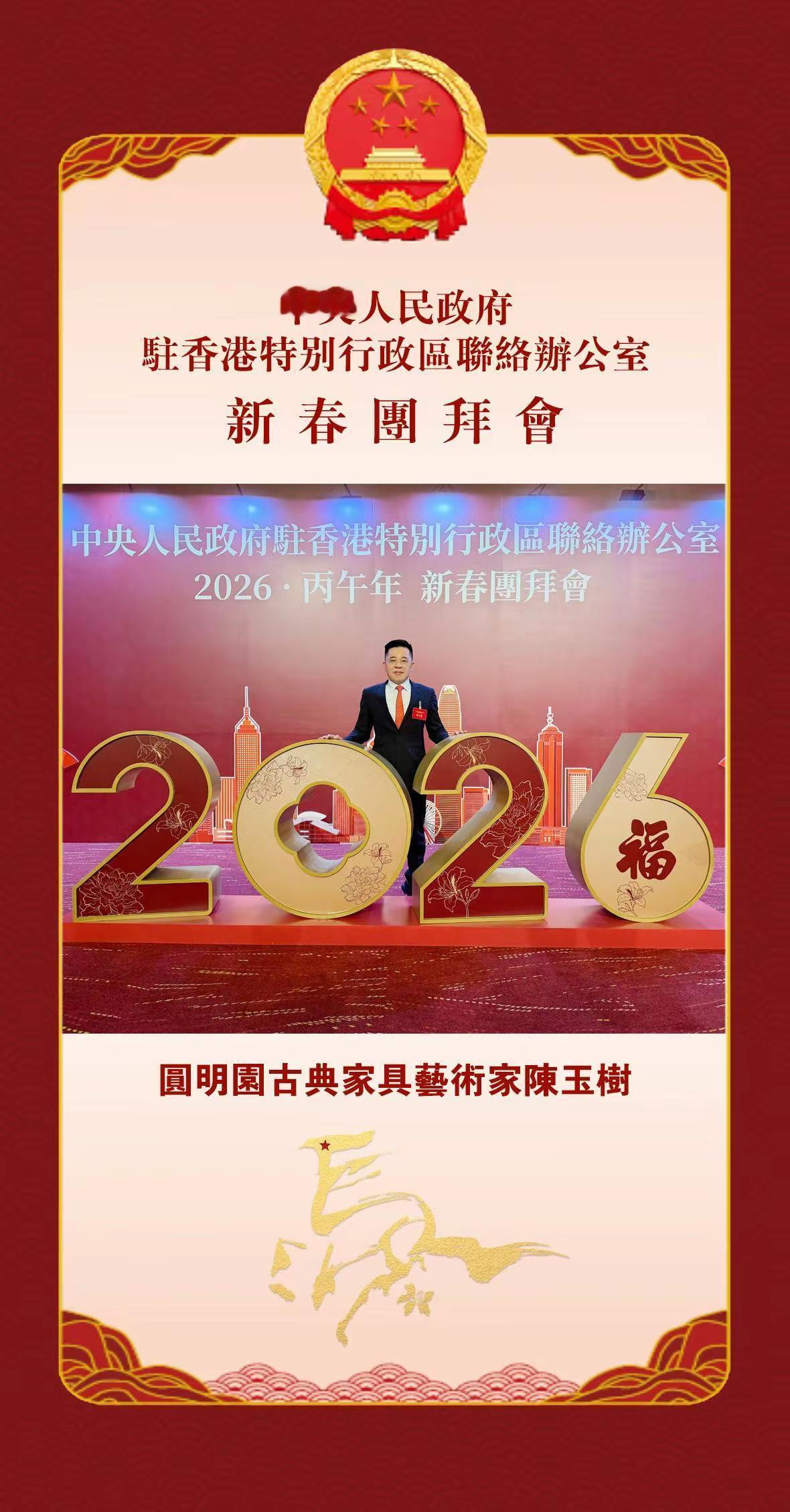 圓明園古典家具藝術家陳玉樹应邀出席中央人民政府駐香港特別行政區聯絡辦公室2026·丙午年 新春團拜會[心][玫瑰][玫瑰][玫瑰][强]
