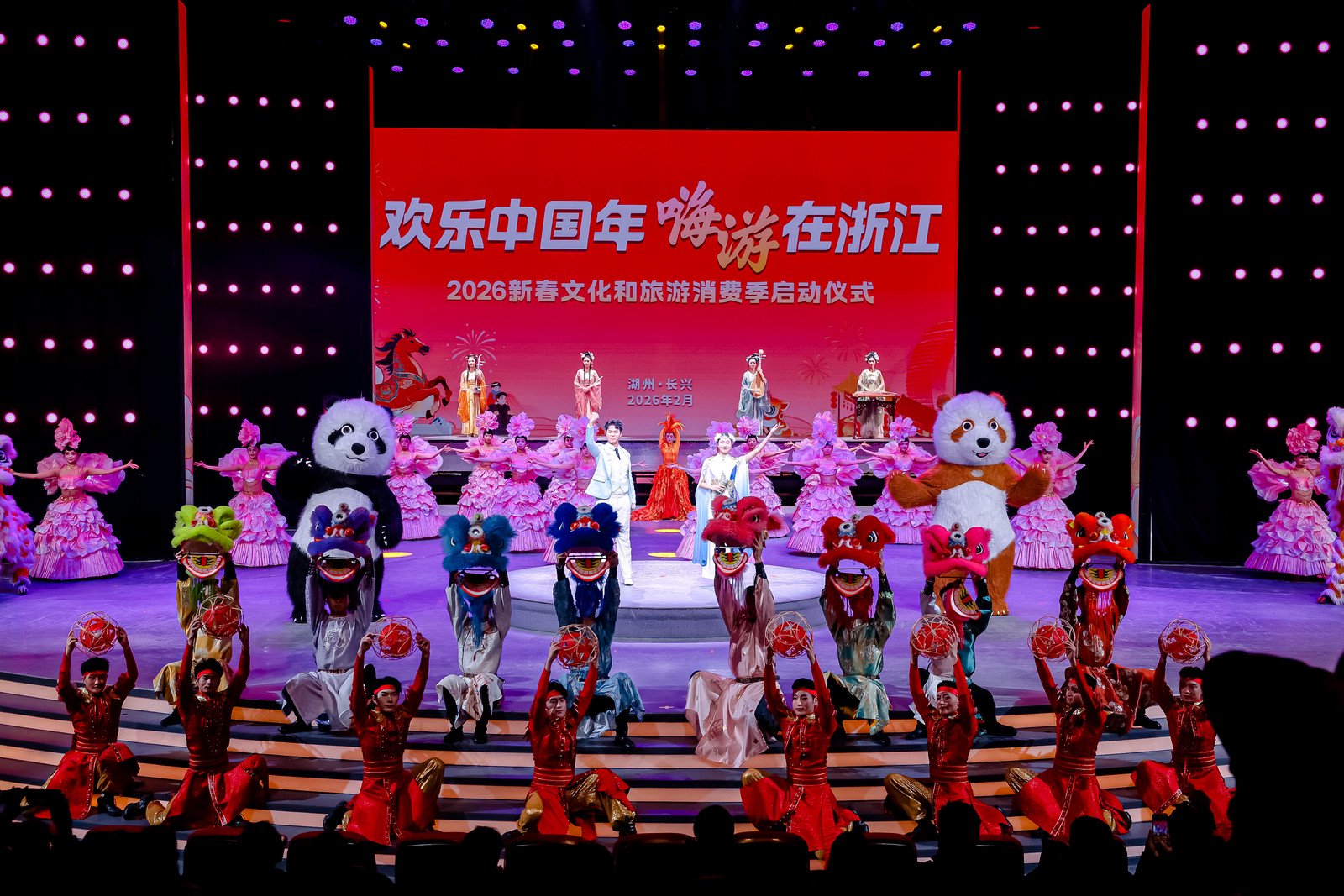立春刚过,年味正浓,“欢乐中国年嗨游在浙江”2026新春文化和旅游消费季在在浙江湖州长兴太湖演艺城启幕。本次活动由浙江省文化广电和旅游厅、浙江省商务厅、浙江省体育局联合主办,湖州市文化广电旅游局、长兴县人民政府承办。沪苏浙皖四地文旅部门领导、全省各地市文旅系统嘉宾、行业协会代表、平台机构、媒体朋友及市民游客代表齐聚一堂,共同见证这场覆盖全省、联动长三角的新春文旅盛宴拉开序幕。