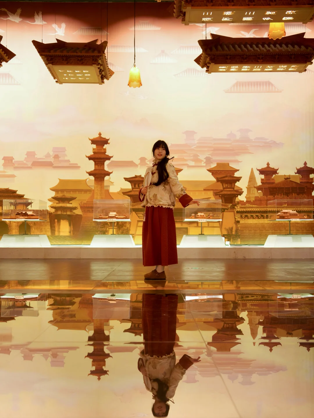 ✔️南朝四百八十寺:在这里可以借助地上的反光镜面,拍出人物和背景的倒影。