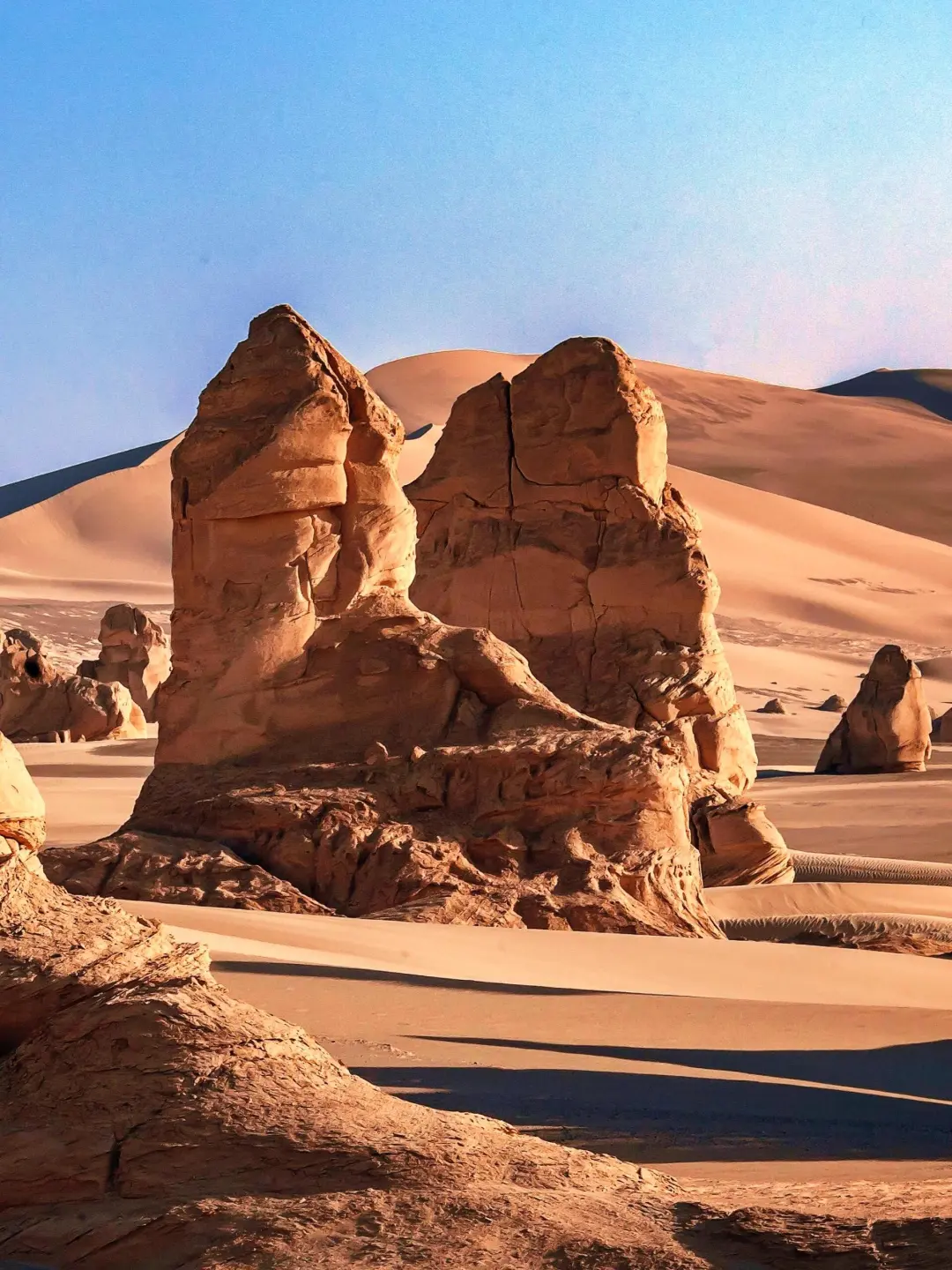 还有塔莎古道的蜿蜒、沙漠公路的辽阔🌪️,顺着路线前行,每一段路都藏着惊喜:和田夜市的烤蛋🥚、红柳烤肉滋滋冒油,手工酸奶粽子甜而不腻,是沙漠尽头的味觉狂欢;喀什老城巷子里的缸子肉咕嘟冒泡,薄皮包子咬开爆汁,配着甜到心坎的瓜果🍈,是丝路重镇的千年烟火;达里雅布依村落的烤全羊🐑,带着原始鲜香,是沙漠居民对生活最热烈的告白。