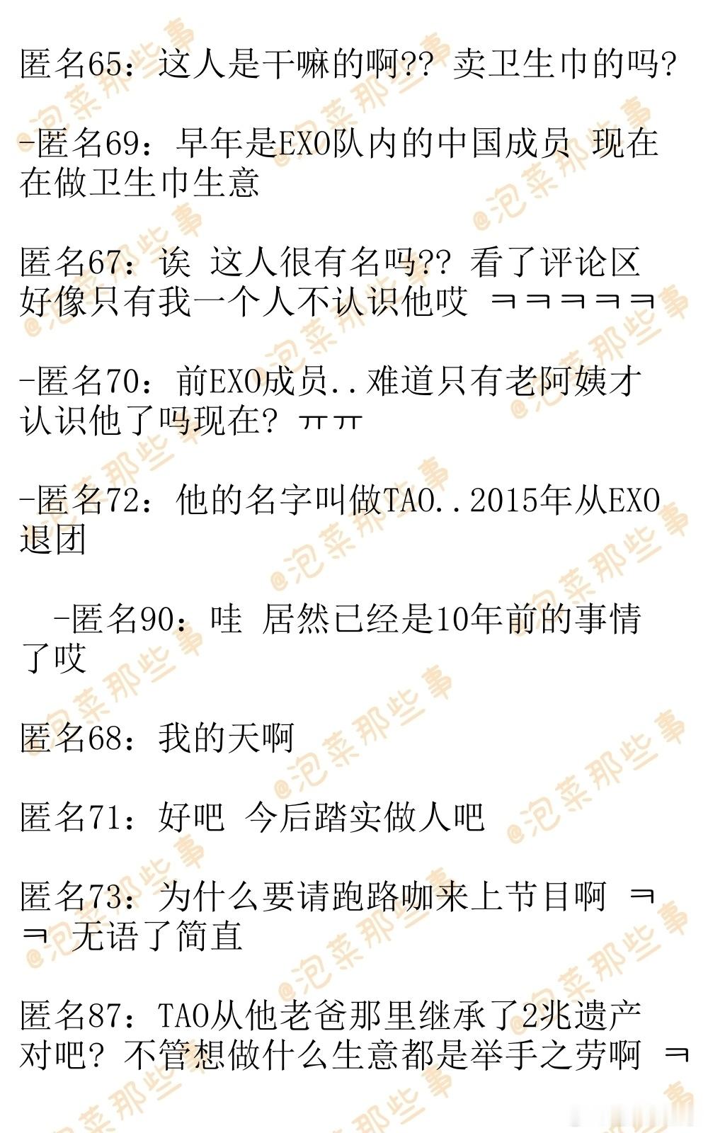 🔥韩网热帖评论翻译🔥前EXO成员黄子韬惊现洪真庆油管节目韩网原帖帖主称:TAO在介绍他的卫生巾生意黄子韬自曝卫生巾工厂现状黄子韬卫生巾卖1.5亿还没回本cr.instiz