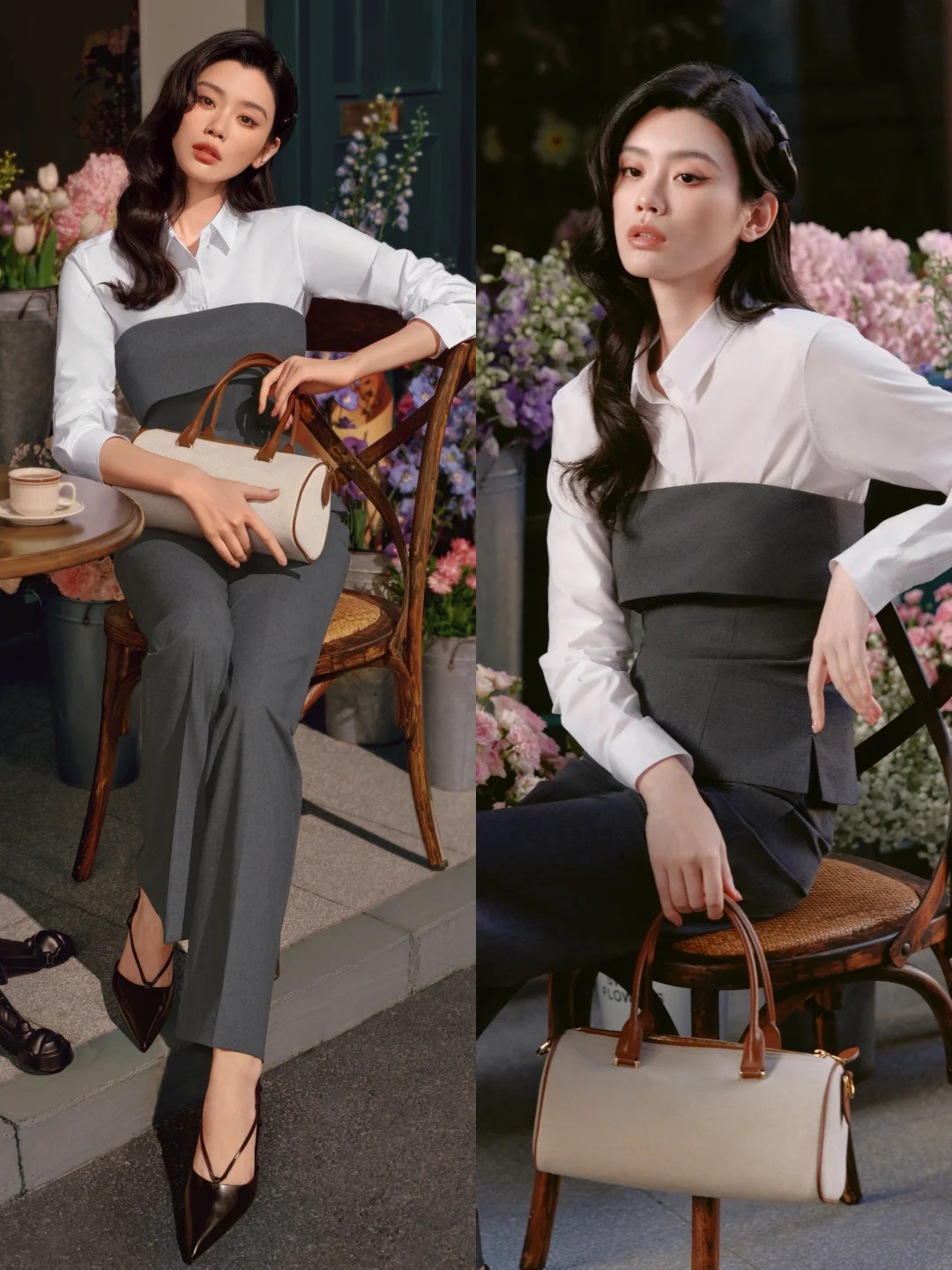 4️⃣ 抹胸马甲叠穿衬衫+阔腿西裤