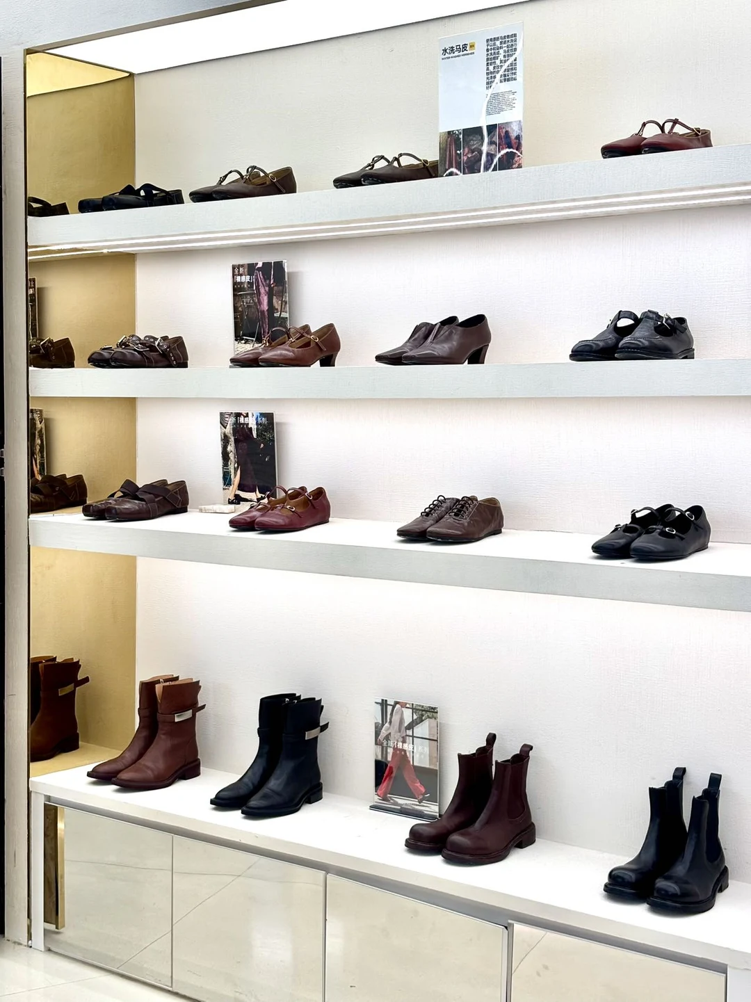 当天试了两双玛丽珍配长裙,温柔中带着一点书卷气;换上黑色长筒靴立马变身都市街拍范儿。