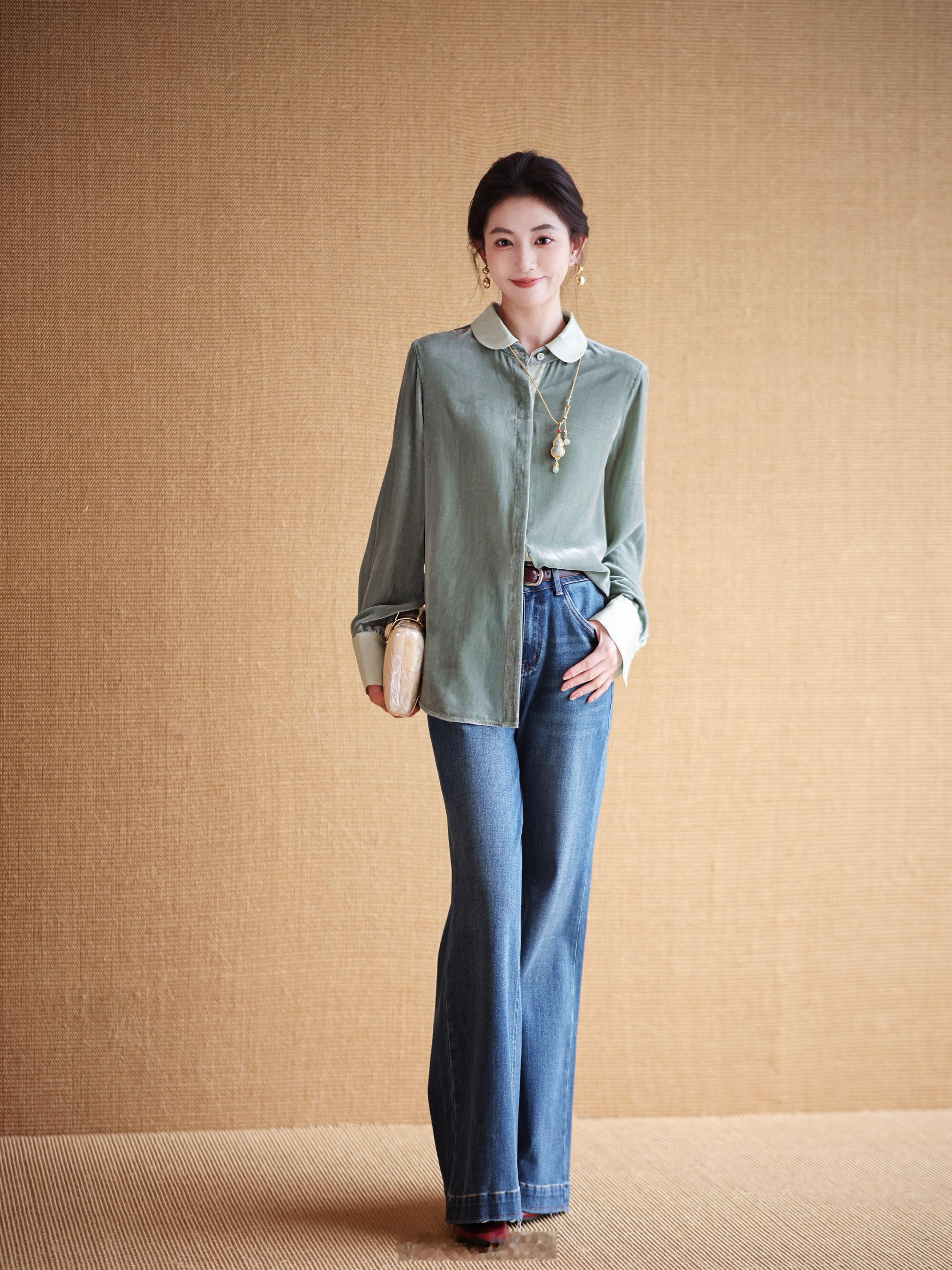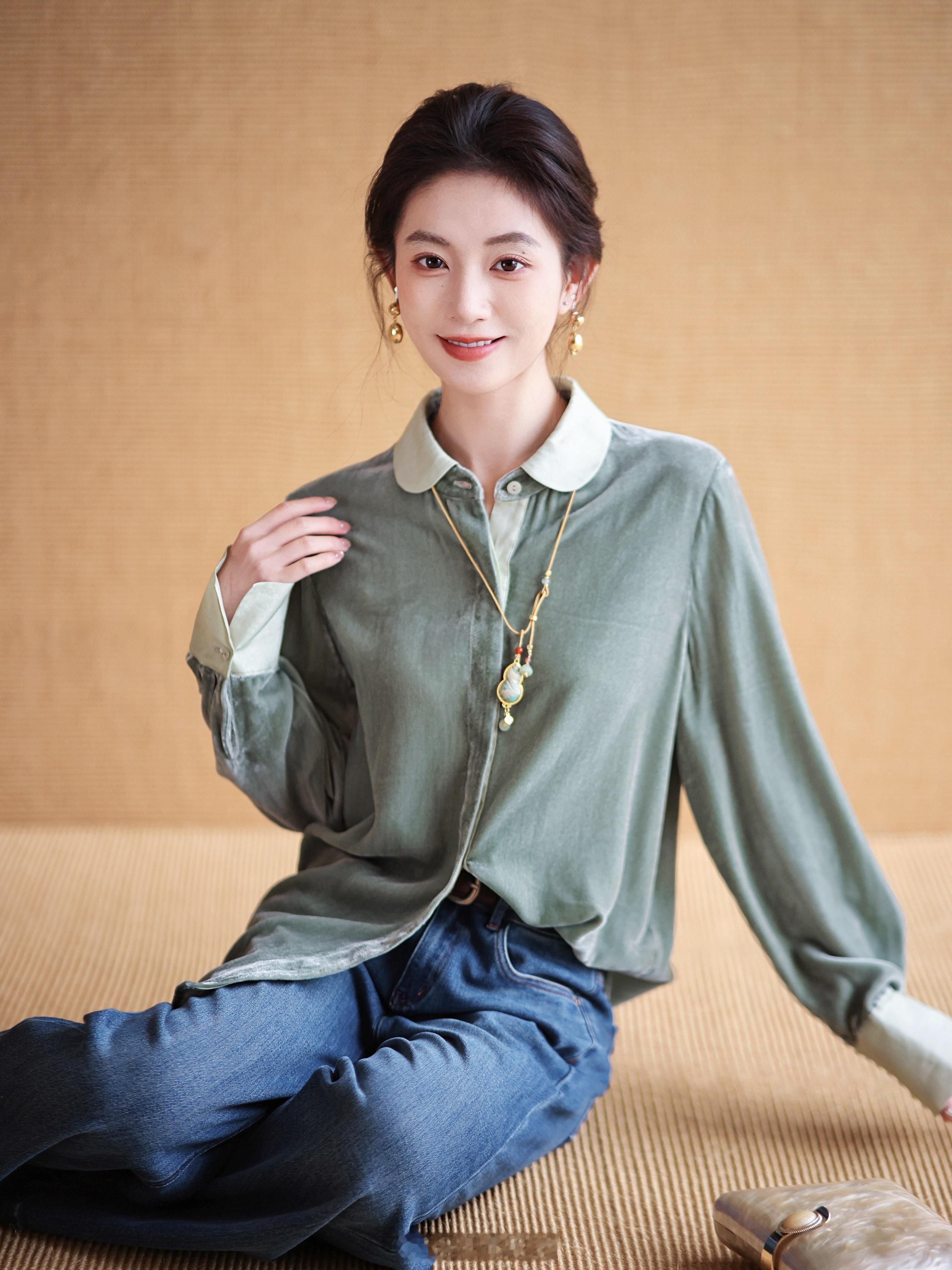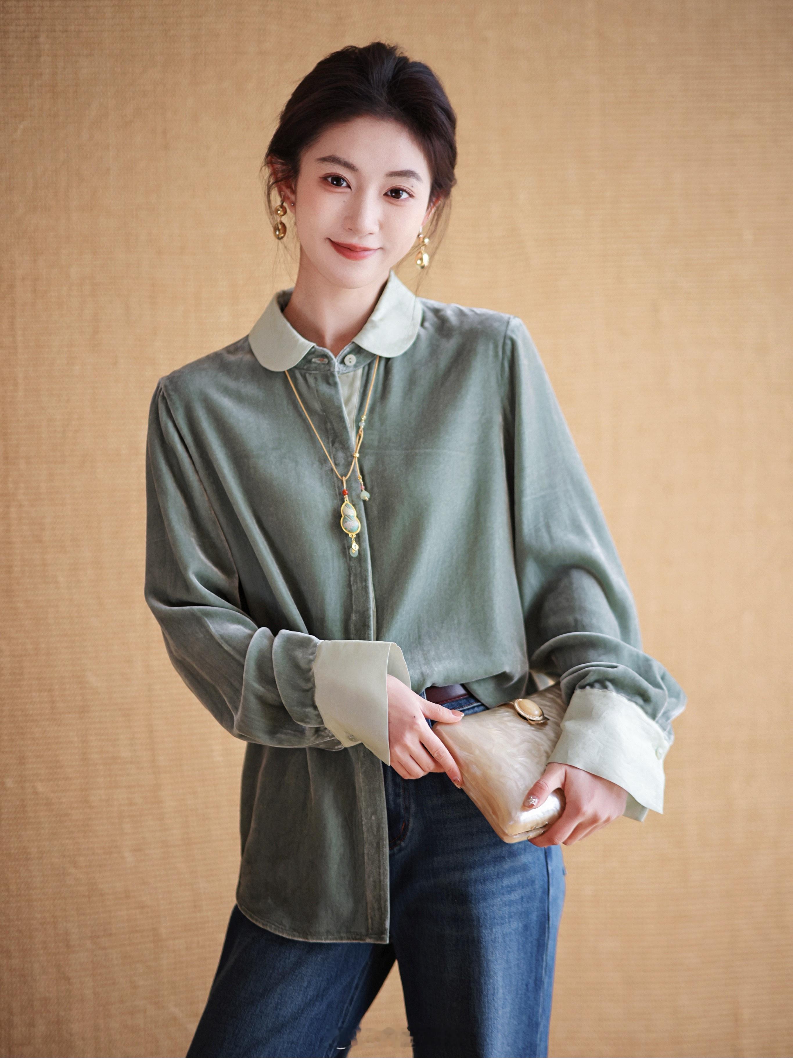 低调又贵气的一定有丝绒衬衫一席之地吧!100真丝丝绒 细腻微哑光光泽 轻软垂贴身
