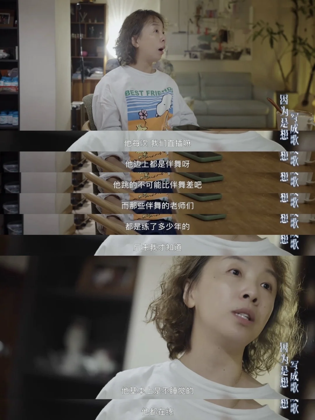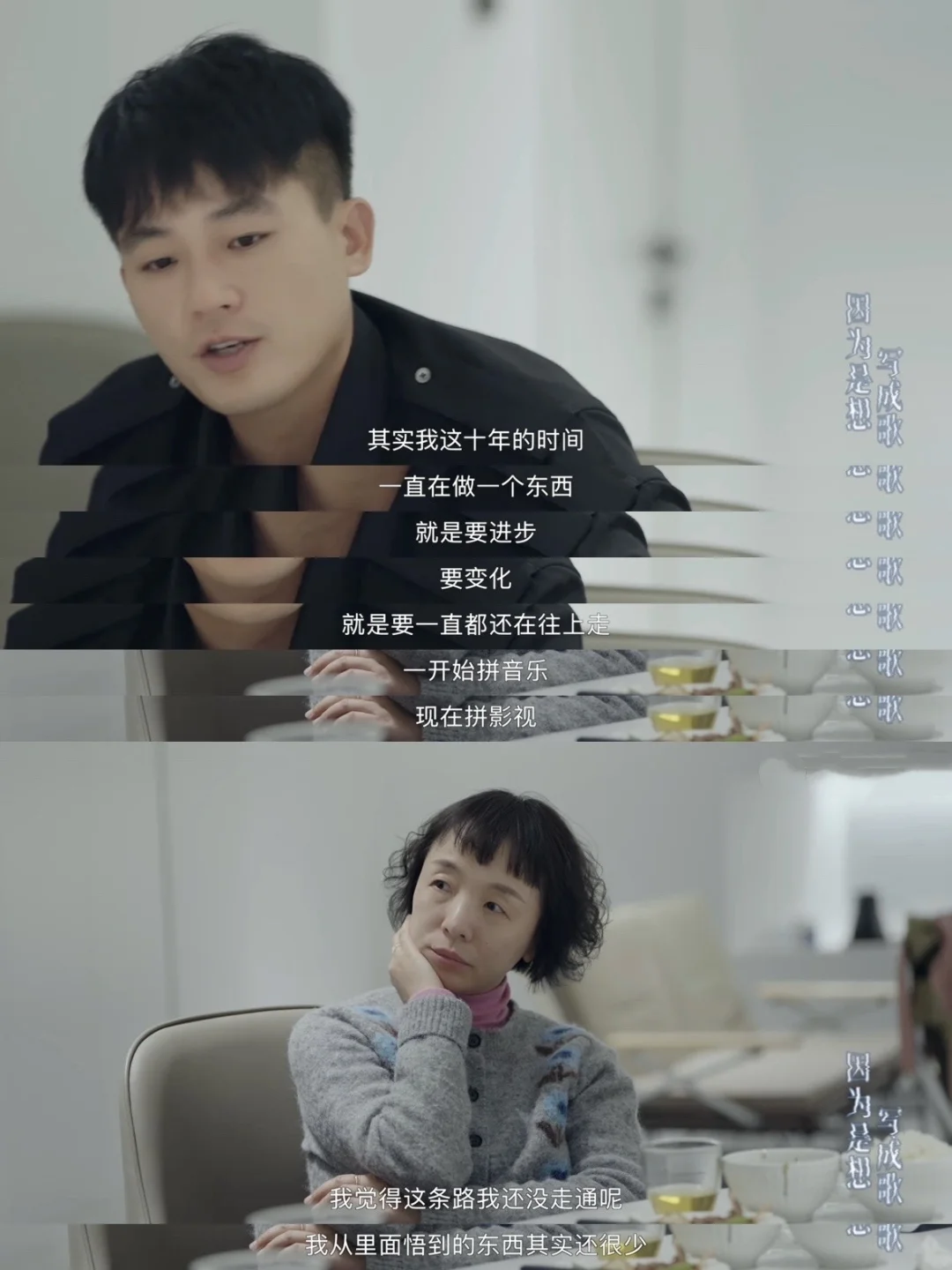 这些经历不只是欧豪一个人的成长,在这部纪录片《因为是想写成歌》里,陈楚生、白举纲、何洁、等其他超女、快女、快男的故事,都藏着相似的底色。他们都经历了普通人一夜成名的“奇迹”,都带着一身孤勇闯进陌生的领域,在质疑声里死磕,也在不被看好时硬扛,只想用一身质朴的“蛮劲”证明“我是谁”。这些具体的、带着烟火气的挣扎与成长,反而让我觉得更为真实动人。