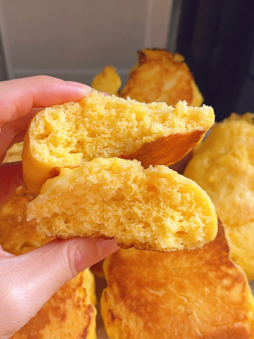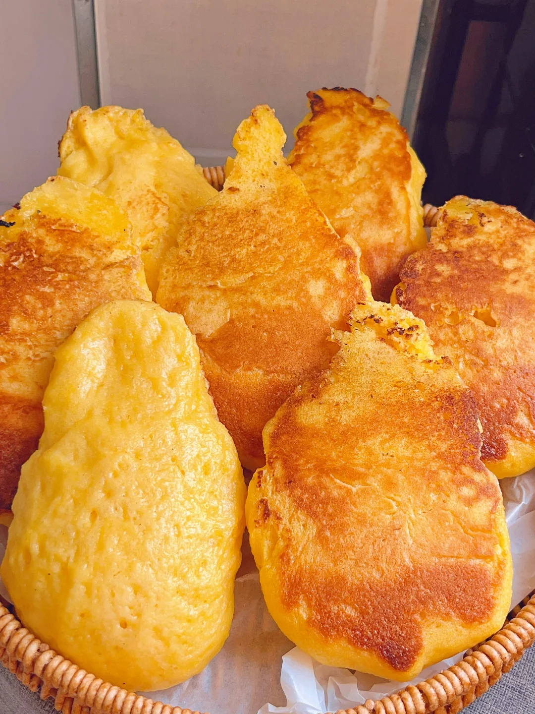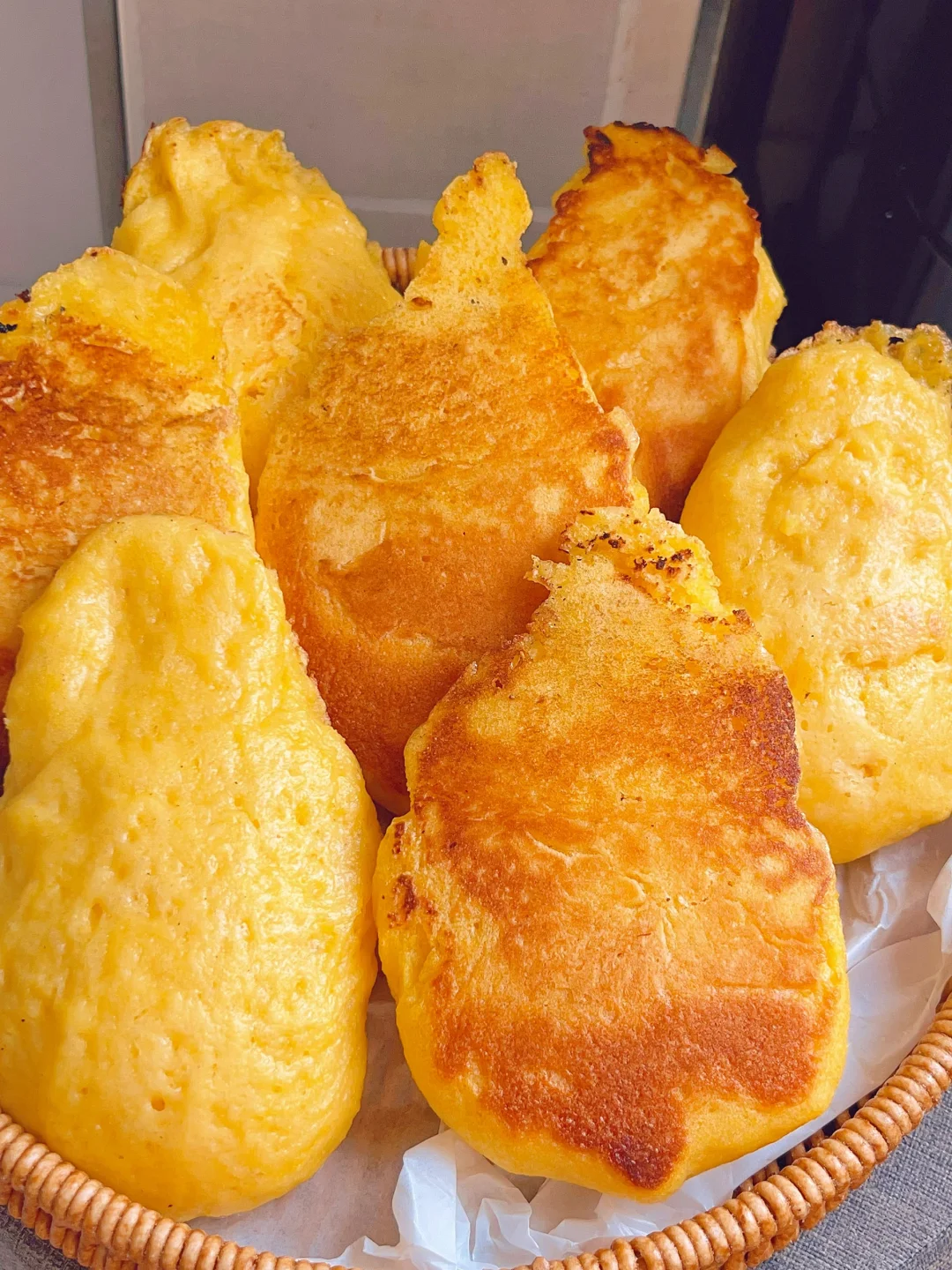 超香的玉米贴饼子,香香软软的一股子的玉米香味 [清单R]食材 250g玉米面、150g开水、100g冷水、1个鸡蛋 30g白糖、4g酵母、200g面粉 [清单R]步骤 1⃣️250g玉米面先用150g开水烫面搅拌成面絮,再加100g冷水拌匀 2⃣️晾凉的玉米面中加酵母白糖鸡蛋面粉揉成团,发酵至两倍倍大 3⃣️锅内刷油舀一碗水烧开,然后把发酵好的面团贴在锅边,盖上盖子中小火12分钟左右焖3分钟出锅