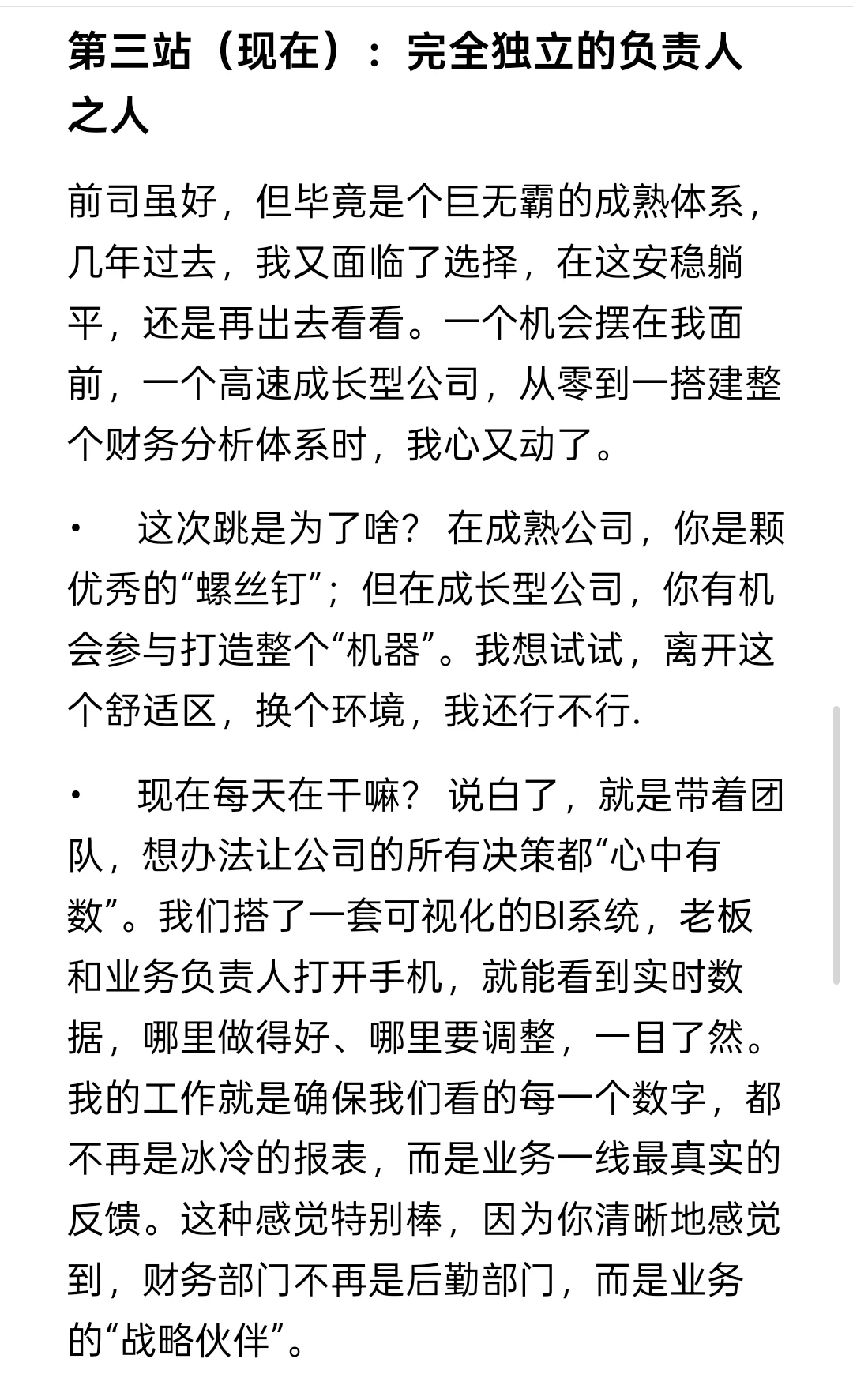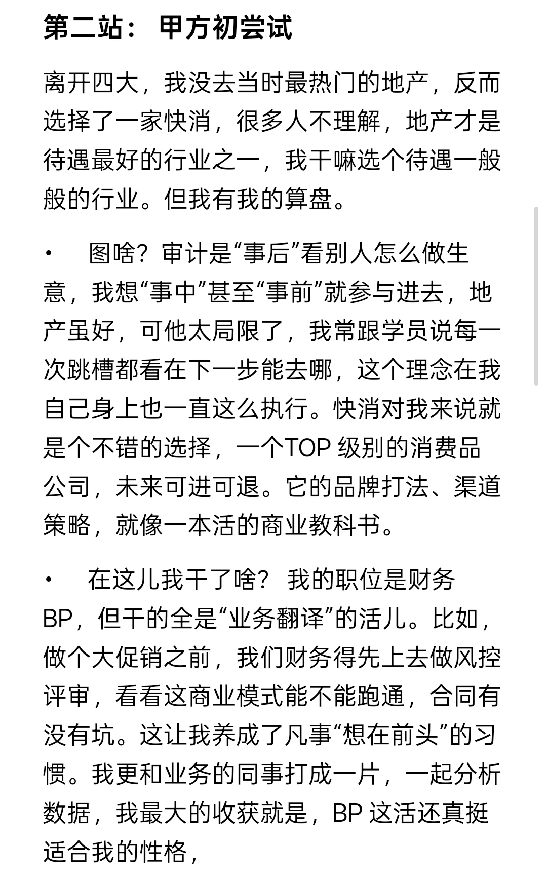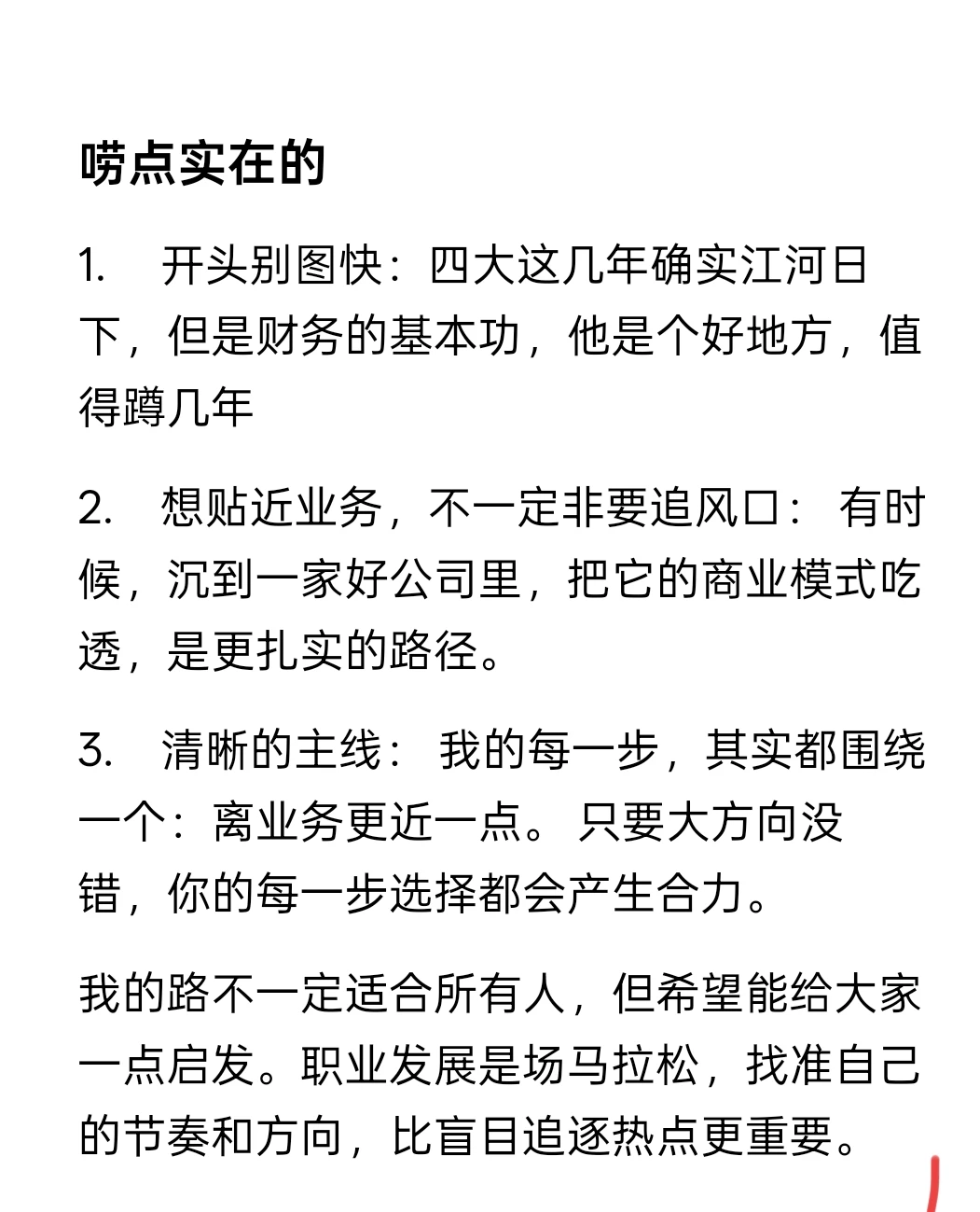 2. 想贴近业务,不一定非要追风口: 有时候,沉到一家好公司里,把它的商业模式吃透,是更扎实的路径。