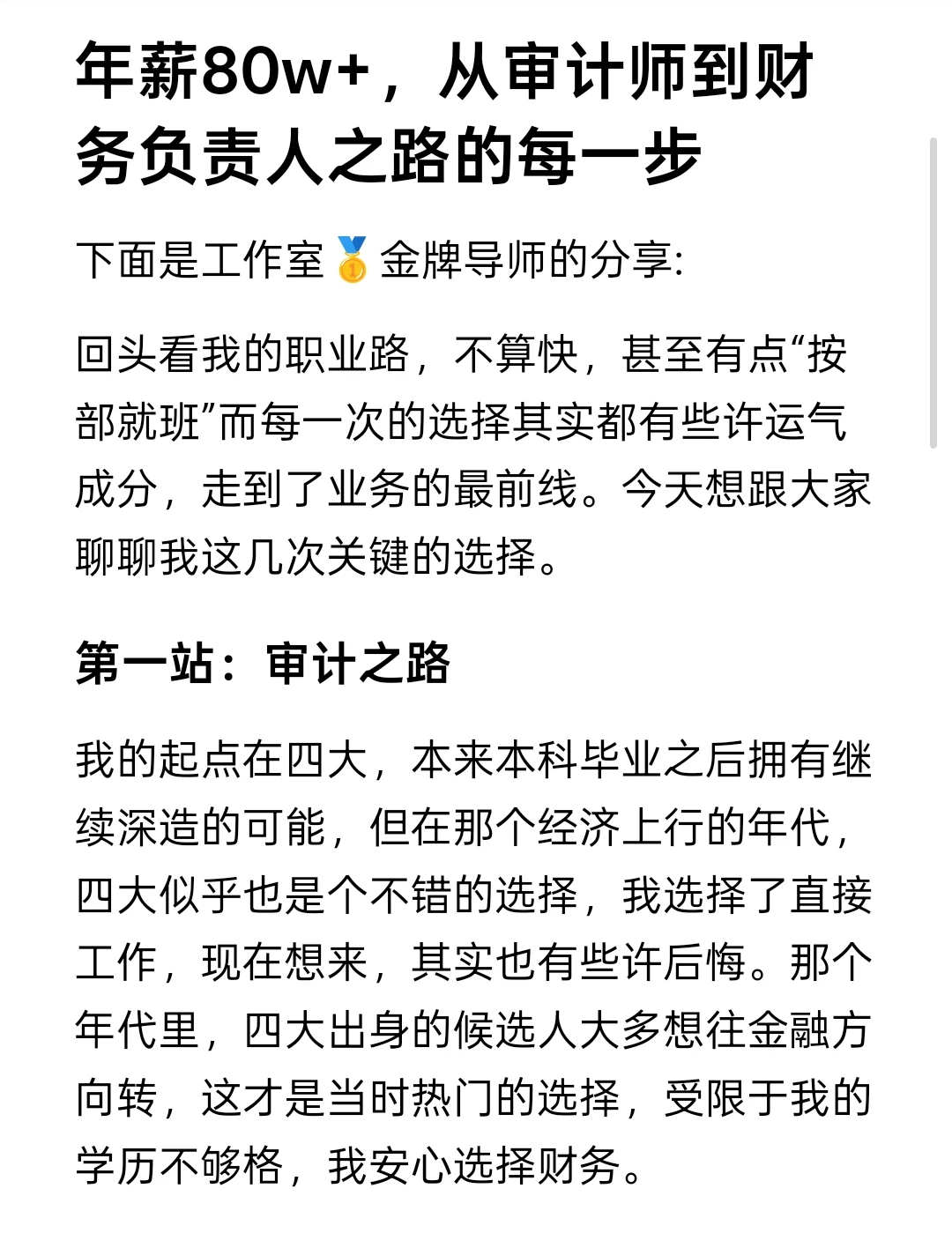 1. 开头别图快:四大这几年确实江河日下,但是财务的基本功,他是个好地方,值得蹲几年