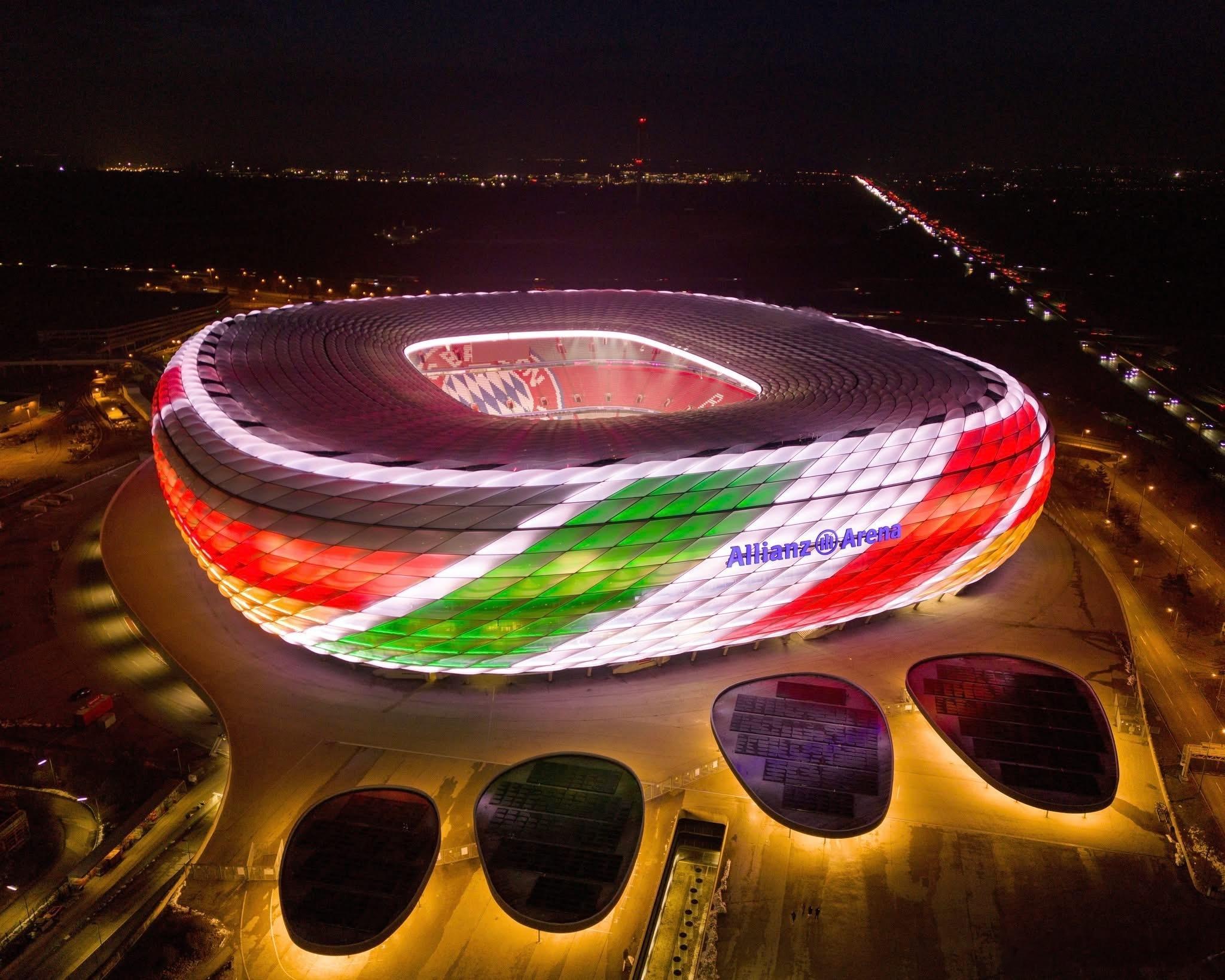 安聯球場在米蘭諾科蒂納奧林匹克運動會開幕時,以德國和意大利國旗的顏色閃耀 🇩🇪🏟️🇮🇹