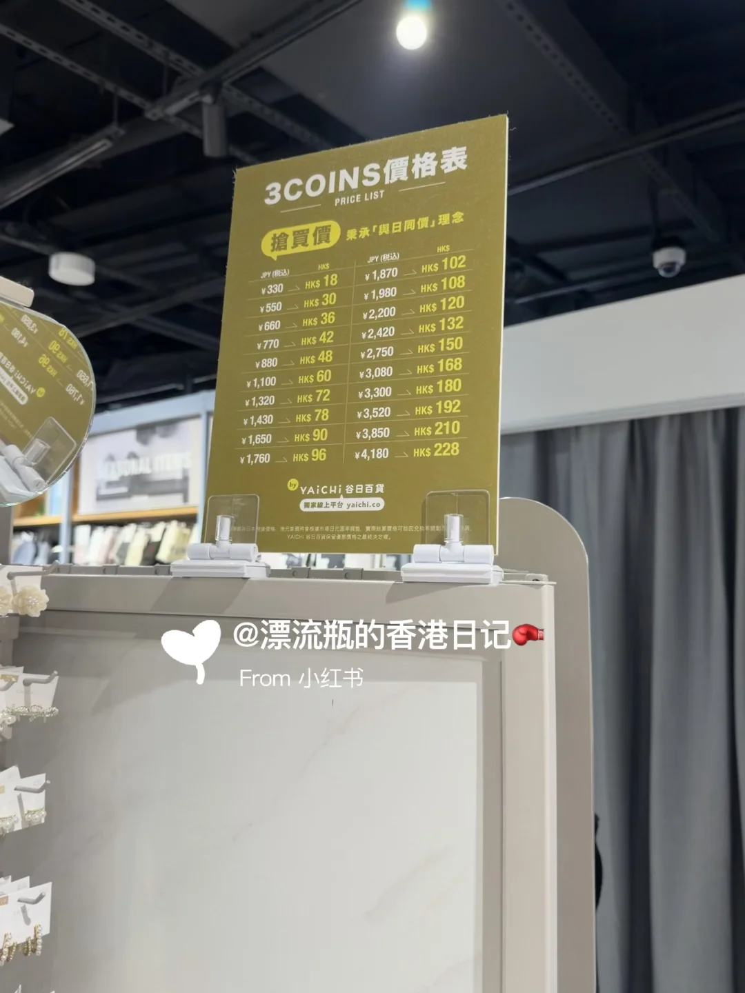 3COINS主打实时汇率换算,和日本本土价格同步,最低只要18港币(330日元)!再也不用特意跑去日本扫货,家门口就能买到同款