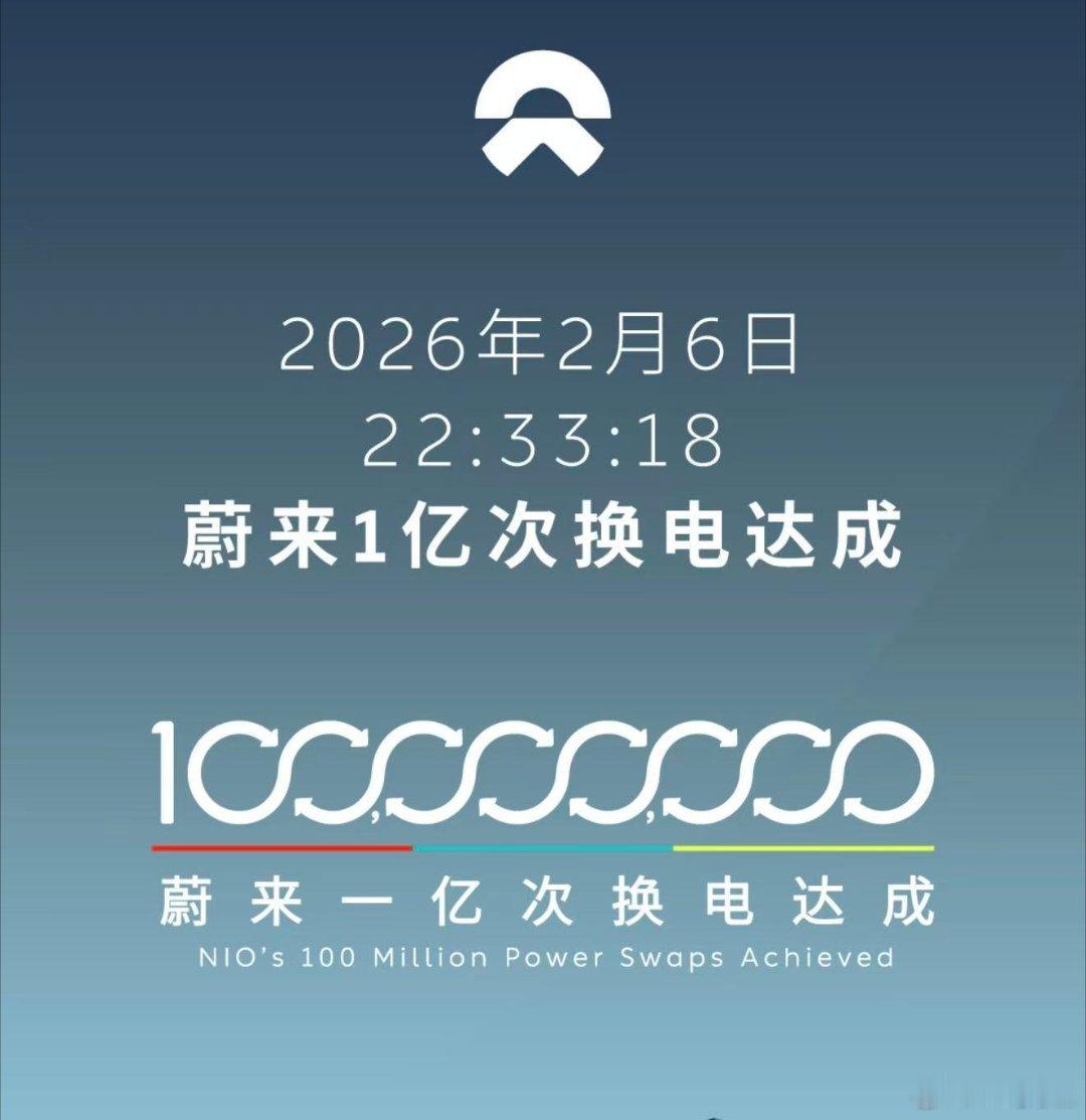 李斌称蔚来换电将突破1亿次2026年2月6日22:33:18,蔚来1亿次换电正式达成!