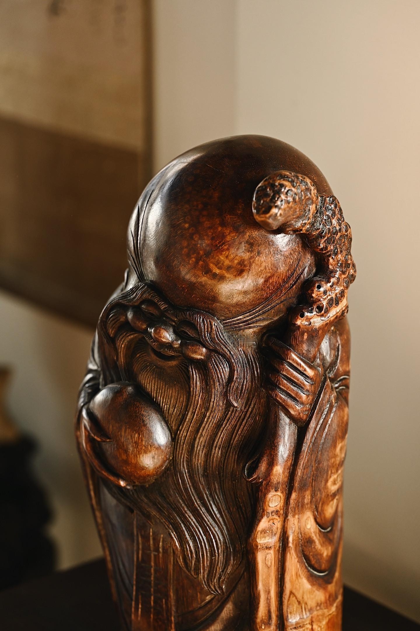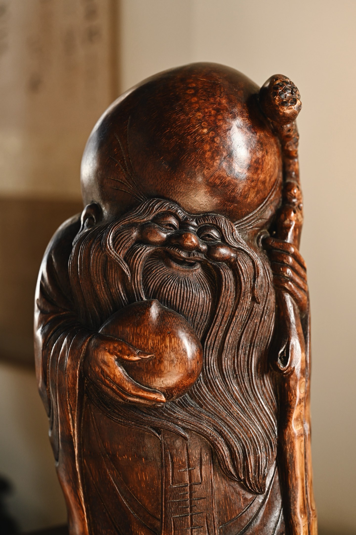 竹雕仿古 | 寿星寿星脸颊圆润,头顶隆突,广额大耳,胸前须髯飘飘,慈眉善面,衣褶