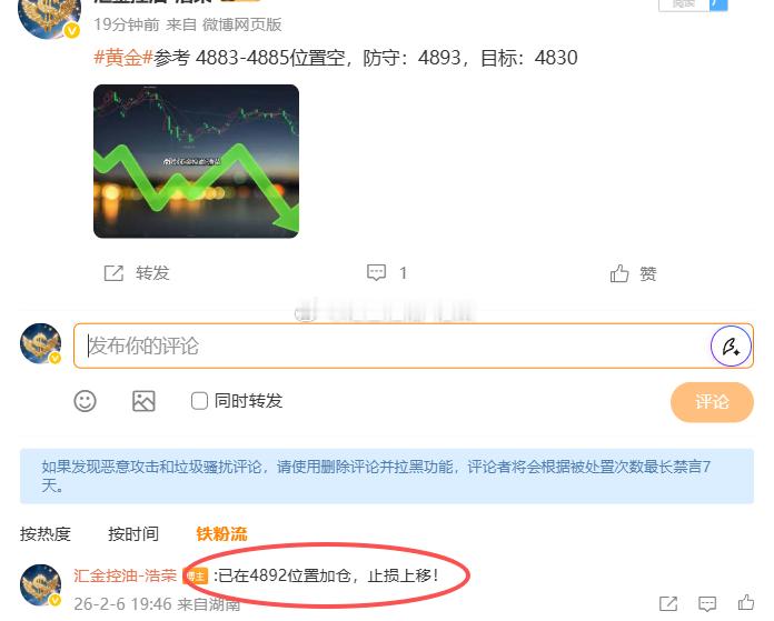 黄金4883位置空,4892位置加仓,现行情下跌至4882位置,空单双仓已浮盈110个点,空单成功扭亏为盈!,我们已在逆境中创造收益,这就是专业与业余的区别,在不确定性中寻找确定性,在波动中捕捉机会。黄金金价