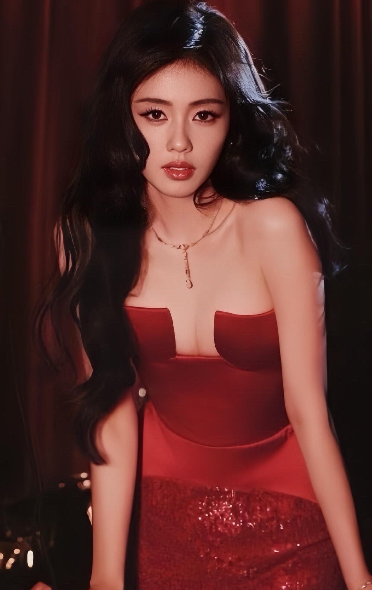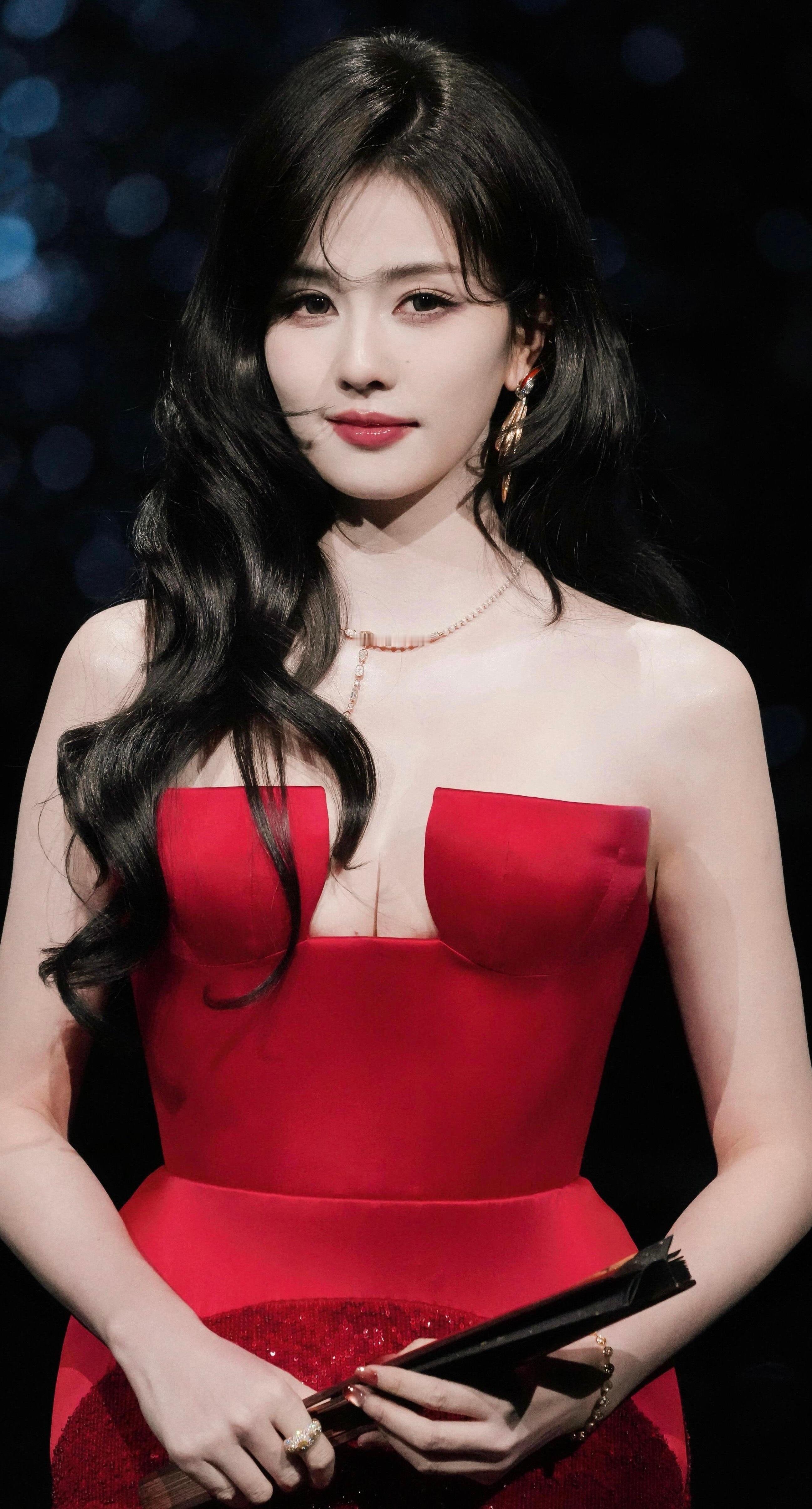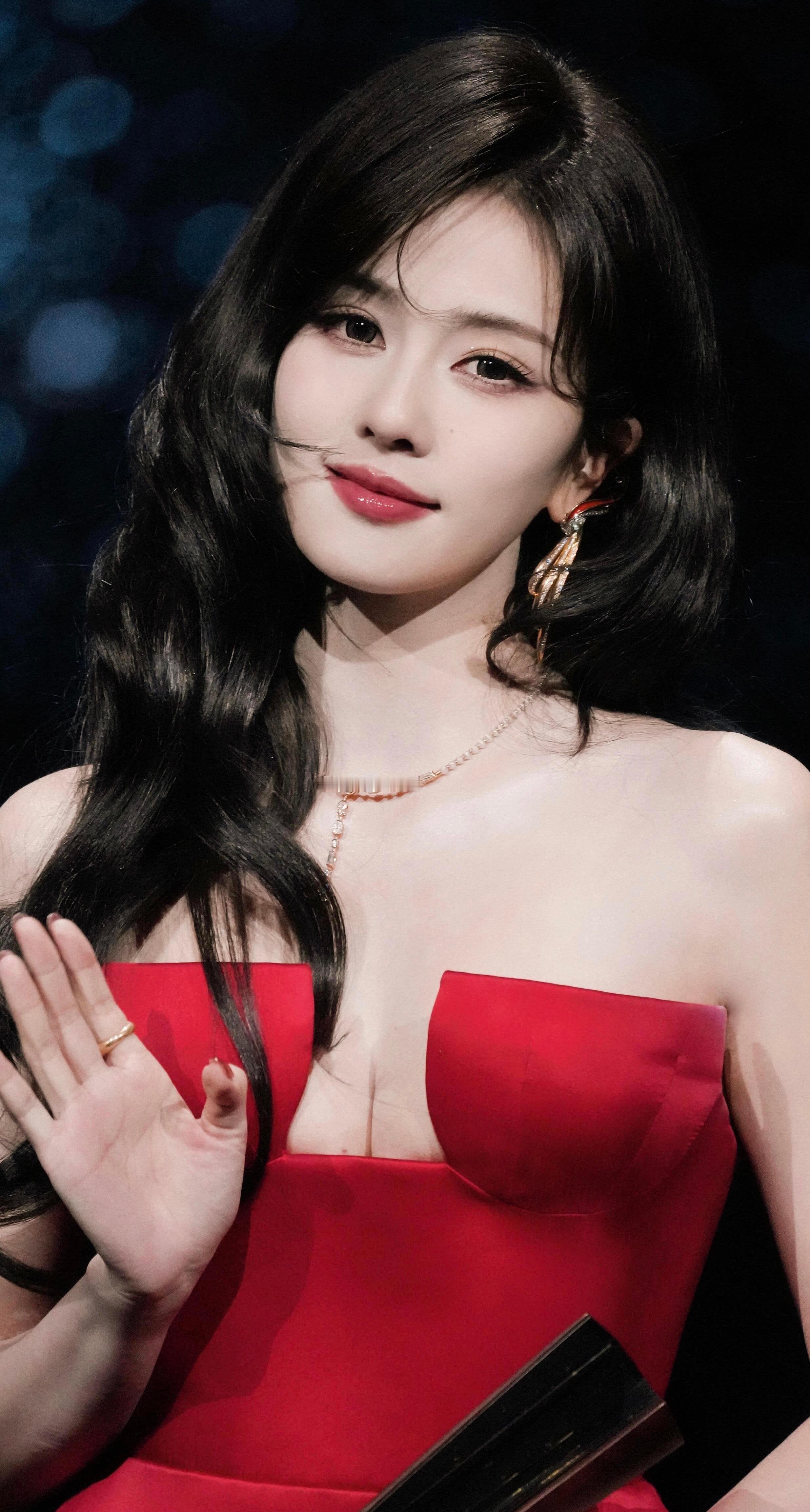 👗造型暴击:明艳红毯美学 一袭红色抹胸礼服直接把“明艳大气”四个字写在了脸上!!绸面质感在灯光下泛着珍珠光泽,衬得皮肤像剥壳鸡蛋一样透亮~搭配高耸发髻和精致珠宝,这不是妥妥的“红裙天花板”本人吗?!每次看她的红毯造型都像在开盲盒,但这次绝对是SSR级别!✨