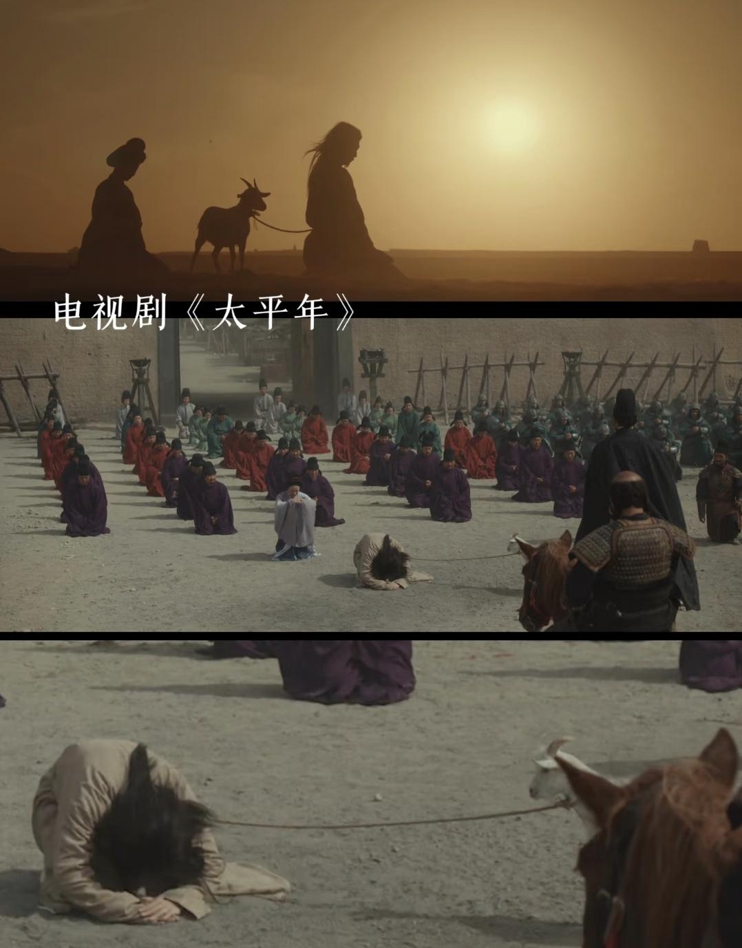 《太平年》“牵羊礼”的羊也太小了吧?真实的历史远比这屈辱万倍! 热播剧 《太平年》中,后晋皇帝石重贵战败后“赤裸披羊皮、颈系绳索”的牵羊礼场景,以极具冲击力的画面登上热搜。 剧中黄昏戈壁的苍茫背景下,帝王褪去龙袍沉默受辱的镜头,被观众称为“国产历史剧的尺度突破”。 也很多观众评论,“牵羊礼”的羊也太小了吧,再大点估计都拉不动。 真实的历史远比剧中屈辱万倍。 《太平年》对牵羊礼的改编,成功唤醒公众对和平的珍视。 一个民族的尊严不在于华服礼乐,而在铁骨与实力! 每个时代的太平盛世,都是千万人用尊严与生命换来的。