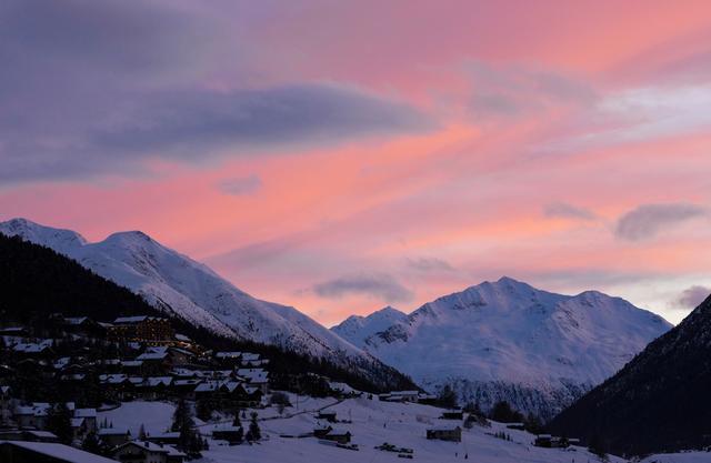 2月5日,利维尼奥山谷中的晚霞美成了一副画