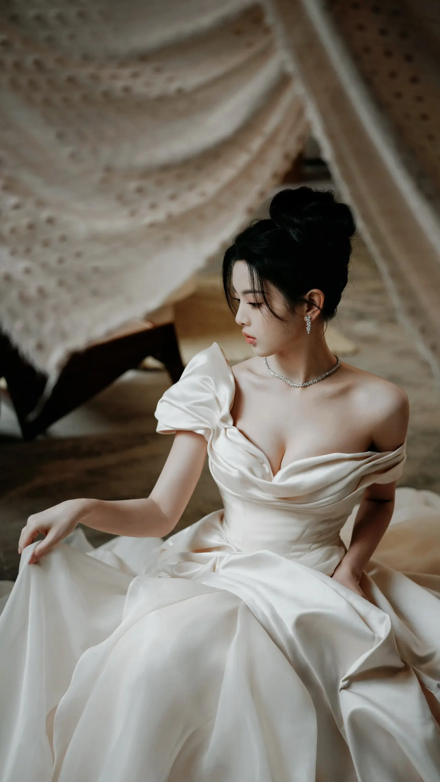 柔粉与流光的碰撞,毛晓彤用一袭露肩鱼尾礼服演绎优雅新可能交叉褶皱勾勒曲线