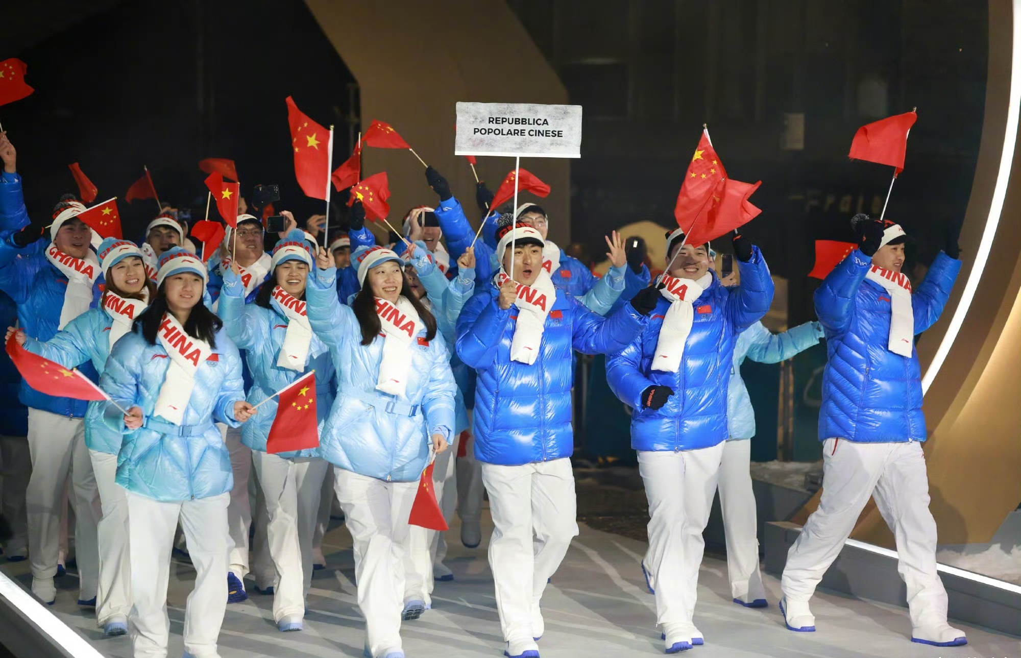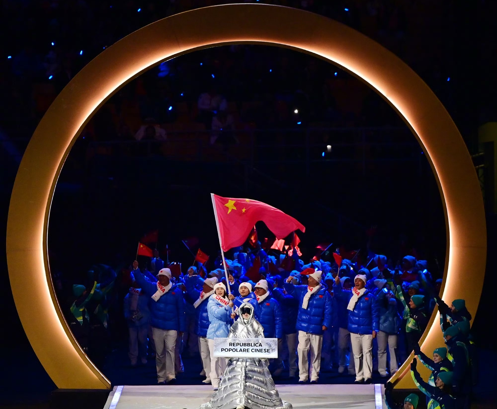 中国冬奥代表团入场 真的服了,太美了,没想到冰川蓝和中国红相遇竟然这么好看,虽然