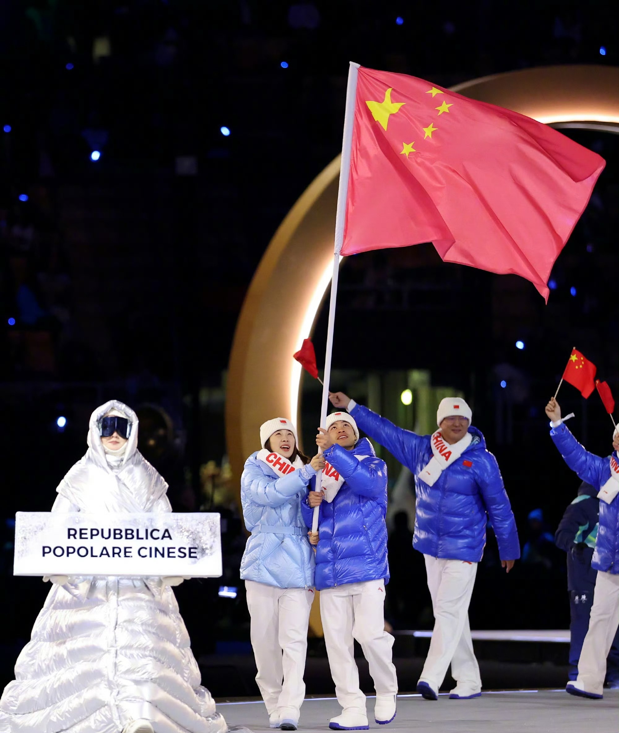 中国冬奥代表团入场 真的服了,太美了,没想到冰川蓝和中国红相遇竟然这么好看,虽然没看开幕式入场仪式,这些图片看着还是非常令人激动,中国体育代表加油👏👏👏宁忠岩张楚桐高擎国旗