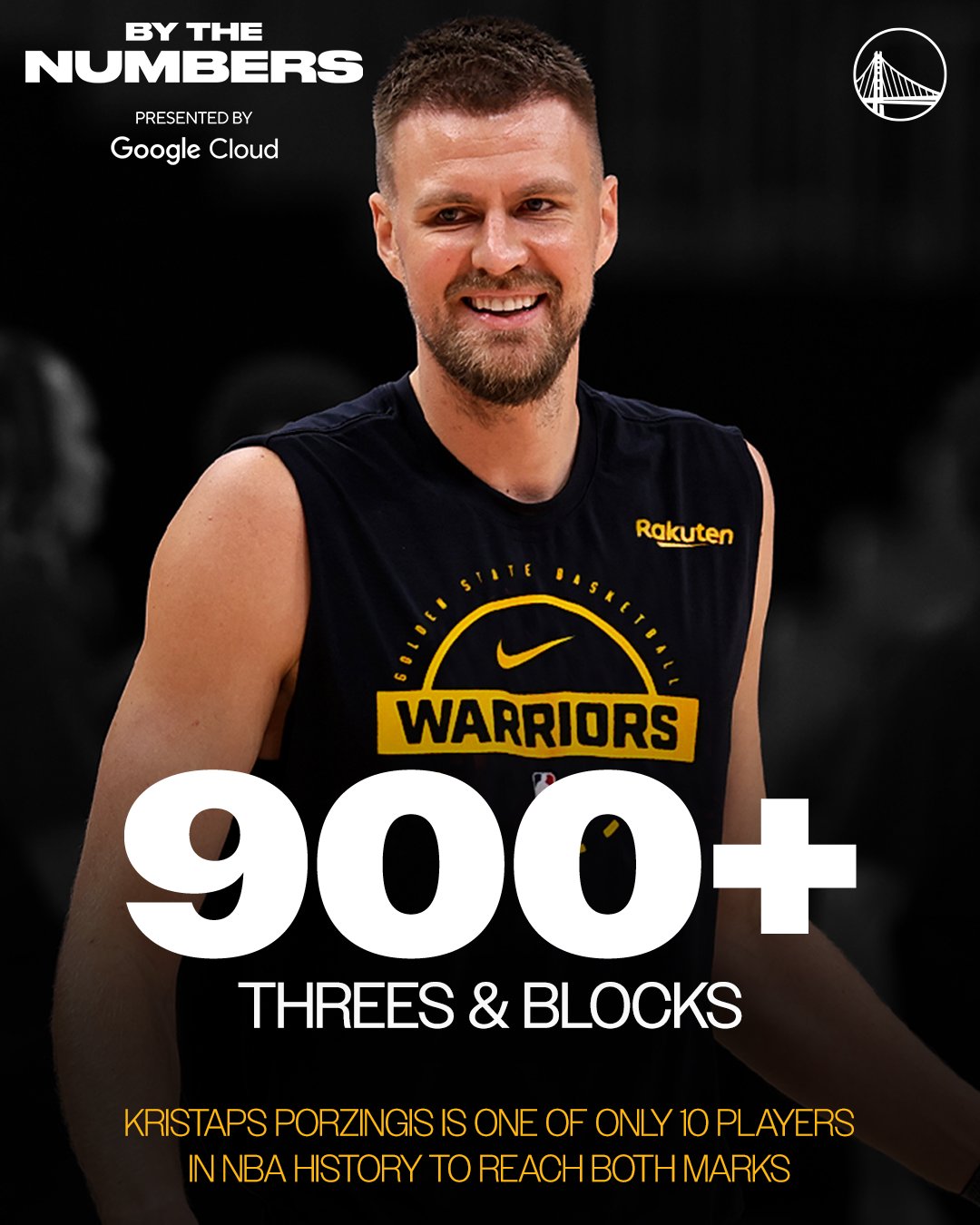 今日,勇士更新社媒晒出波尔津吉斯的个人数据记录海报,并配文: