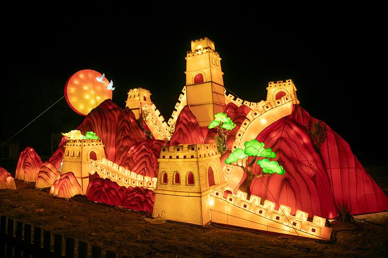 本次灯会从2月6日持续至3月3日,在张裕爱斐堡酒庄打造超过10000平方米的展示空间,以2公里夜游步道串联四大主题区域与24组特色灯组,将马年生肖文化、新春祈福寓意与密云生态特色、城堡建筑美学深度融合。