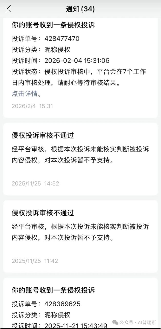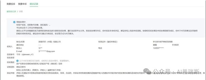 阿里从去年11月起持续对该公众号发起了侵权投诉,但均被微信驳回,最新一次投诉发起于今年2月4号。