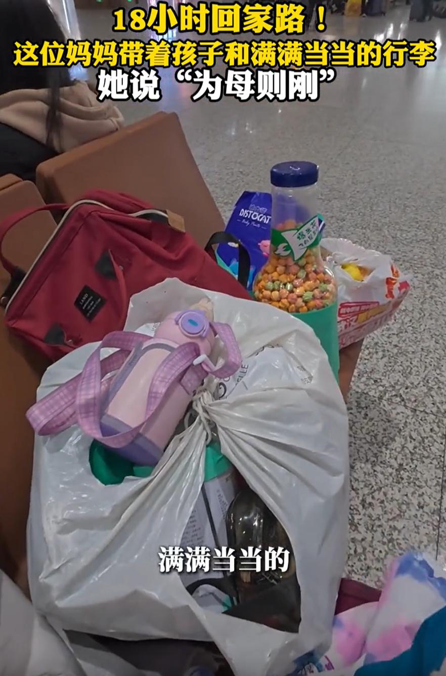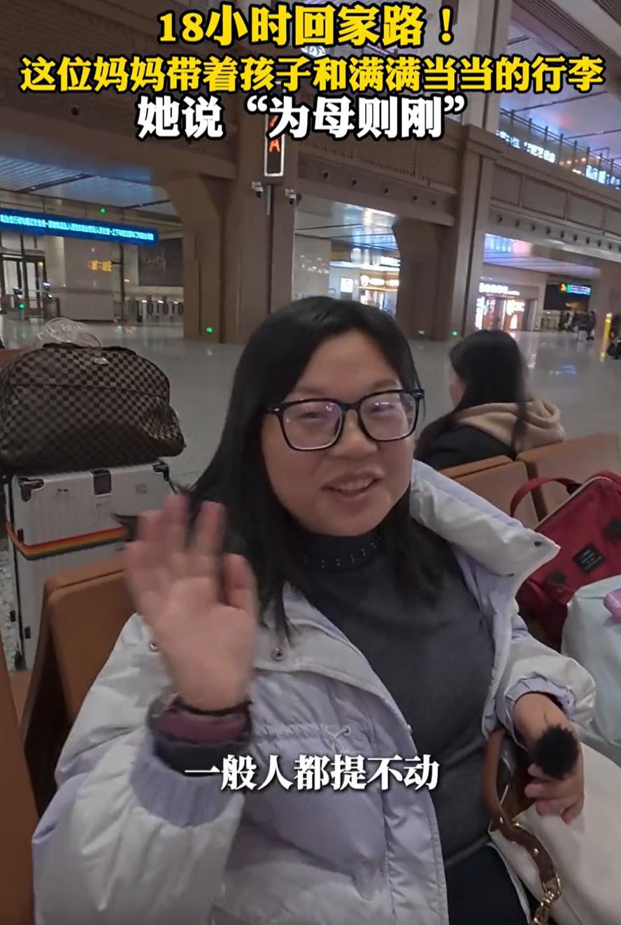 陕西西安,一位妈妈带着两个孩子回老家过年,虽然路途遥远,但她却没有选择坐飞机,而是拎着大包小裹带孩子坐18个小时的火车,面对记者采访,女子笑着回答说:为母则刚!网友:是个好妈妈!也是个孝顺女儿! 记者在车站采访春运时,发现一名女子很特别,一个人拎着很多的很大的行李,还带着两个孩子,询问中了解到,贺女士今年36岁,这次也是带着两个孩子回老家过年,再坚持18个小时就到家了 女子的行李中不仅有孩子们的衣物,也装满了零食,毕竟对于两个孩子来说,在车上的18个小时还是很漫长的,起码好吃的要备足 女子还不忘调侃:你看这行李满满当当的,一般人还提不动呢,没办法,为母则刚! 有人可能会问,带着两个孩子,为什么不坐飞机?快得多,也轻松得多 原因其实不难猜测。春运期间机票价格不菲,一个人的票可能就抵得上三张火车票。对于普通家庭来说,这笔账算得很清楚。而且火车可以携带更多行李,对于要带年货、带礼物回家的人来说,这点尤其重要 火车也有火车的好处。虽然时间长,但活动空间相对大一些,孩子们可以在车厢里走动,看看窗外变化的风景。卧铺车厢里,还能躺着休息,这对带孩子的人来说是个不小的安慰 关键是火车承载着许多人的集体记忆。那种哐当哐当的声音,车厢里混杂的各种气味,窗外掠过的田野和山峦,都是回家路上不可或缺的一部分。对于孩子来说,这趟漫长的旅程本身,就可能成为他们童年记忆中特殊的一页