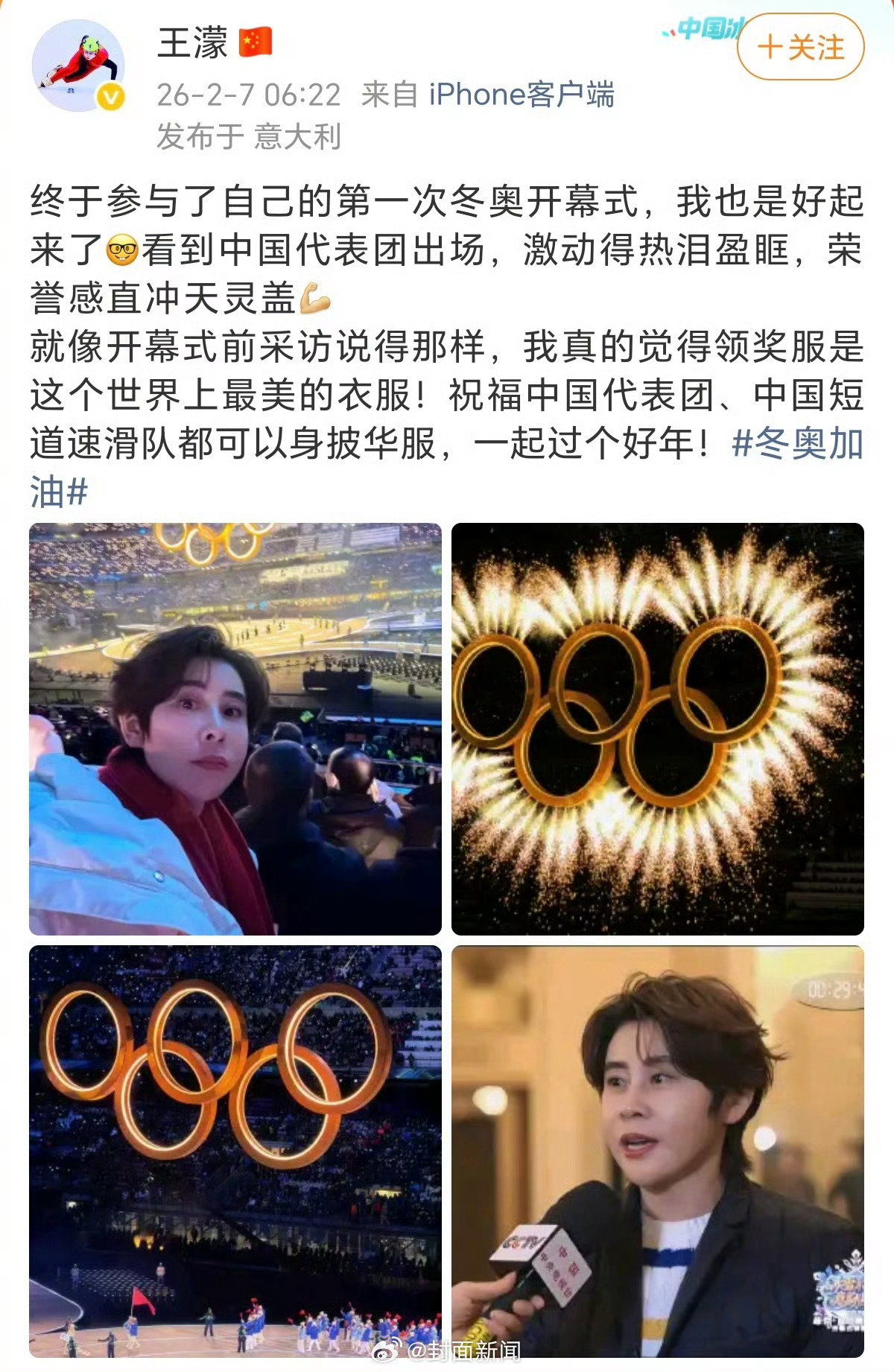 【#王濛说看到中国代表团热泪盈眶#】#王濛祝福中国队# 7日,发文:“终于参与了自己的第一次冬奥开幕式,我也是好起来了🤓看到中国代表团出场,激动得热泪盈眶,荣誉感直冲天灵盖祝福中国代表团、中国短道速滑队都可以身披华服,一起过个好年!” #冬奥会开幕式##米兰开幕式 好正常好好看##中国队蓝羽绒服 好看##意大利手势##奥运五环出场方式太震撼了##林孝埈转发中国队入场照#