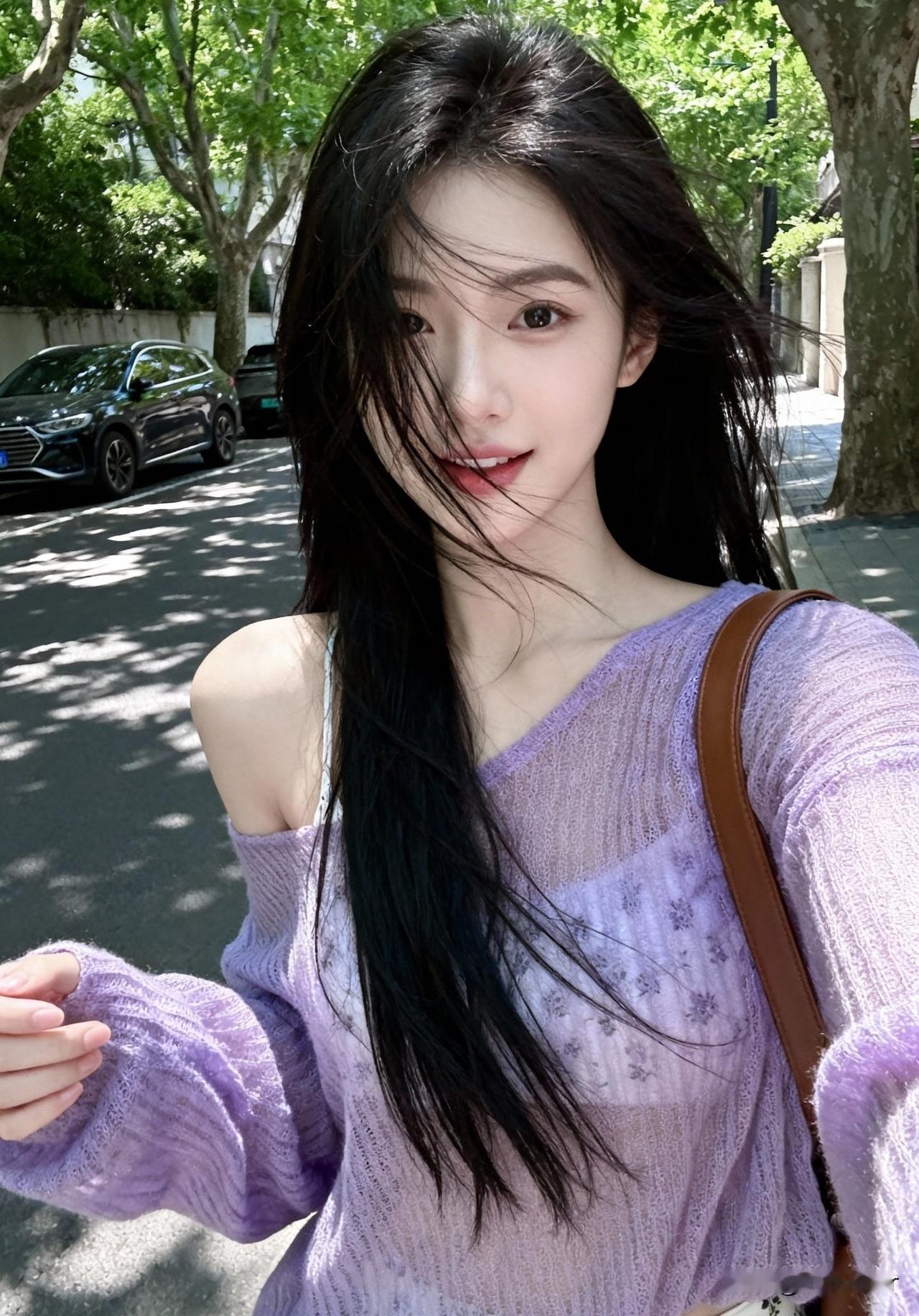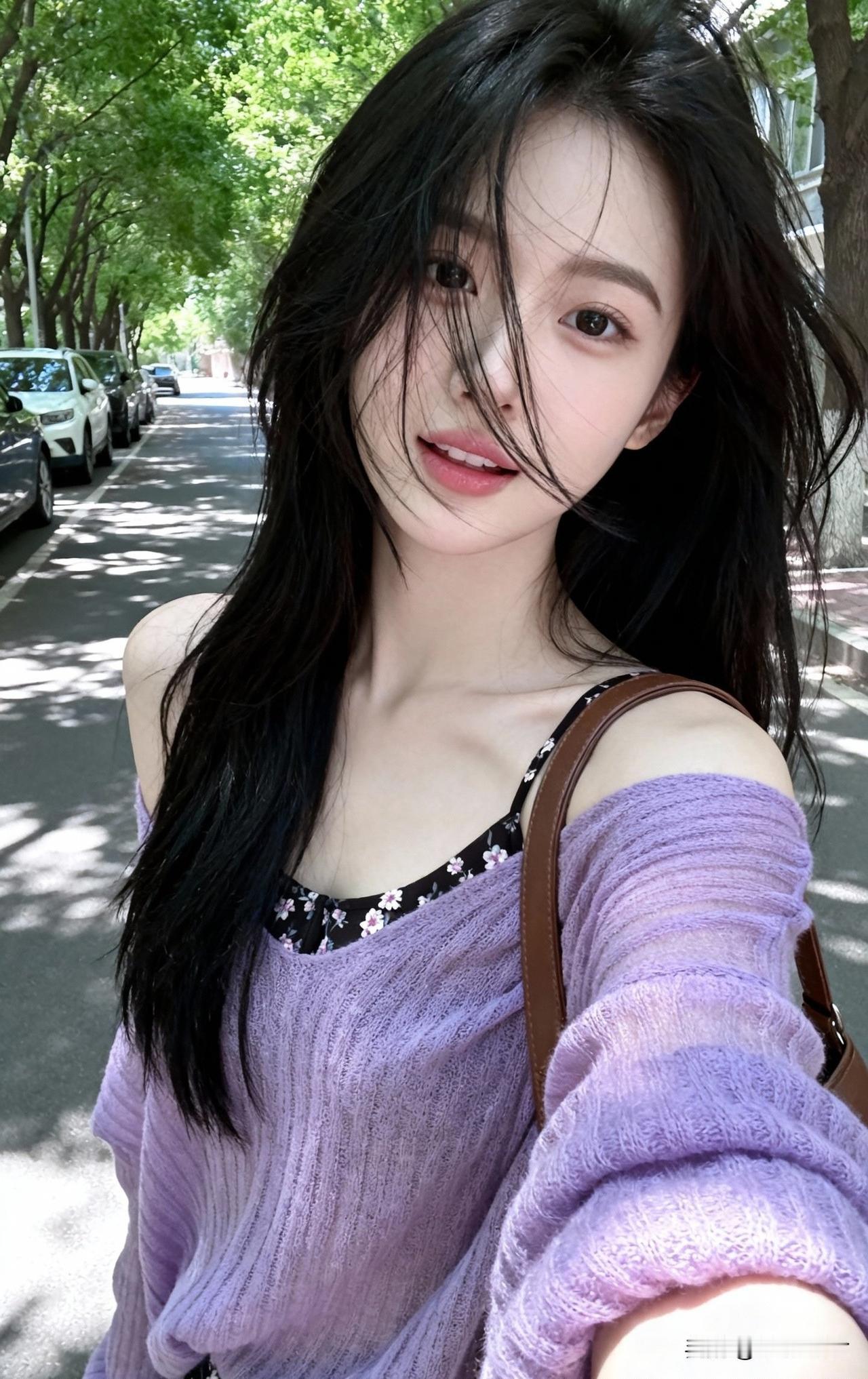 绿树荫中行,轻纱拂面风。