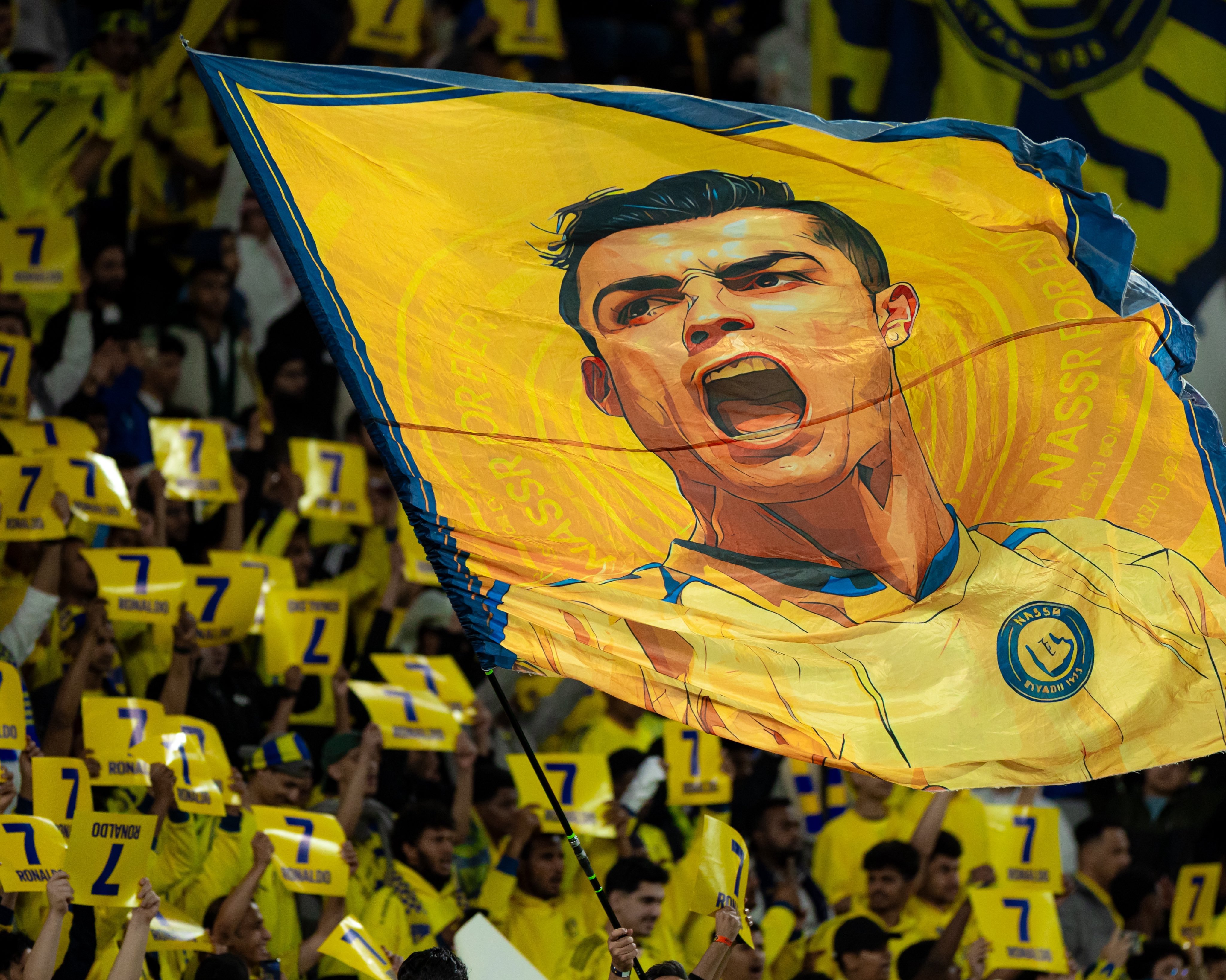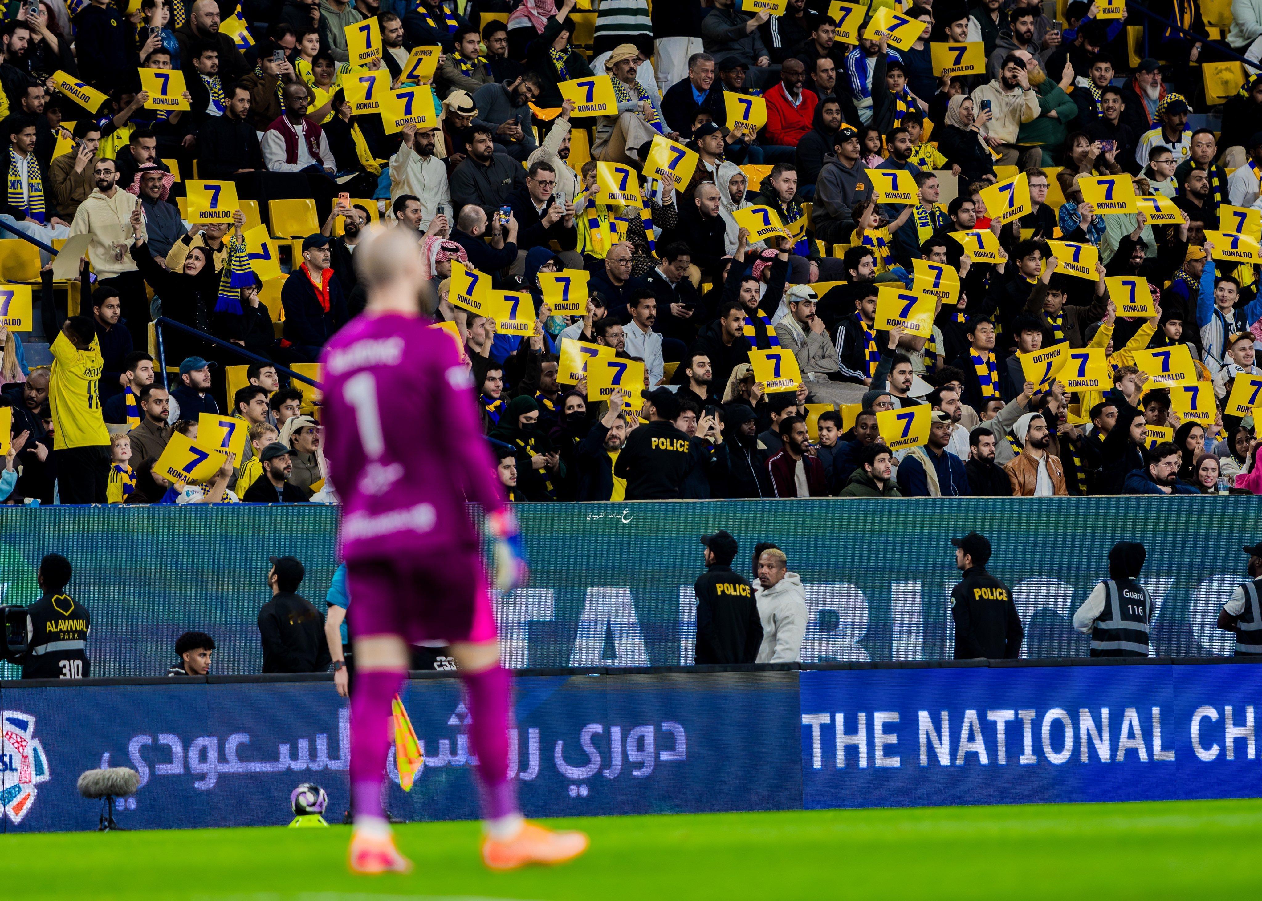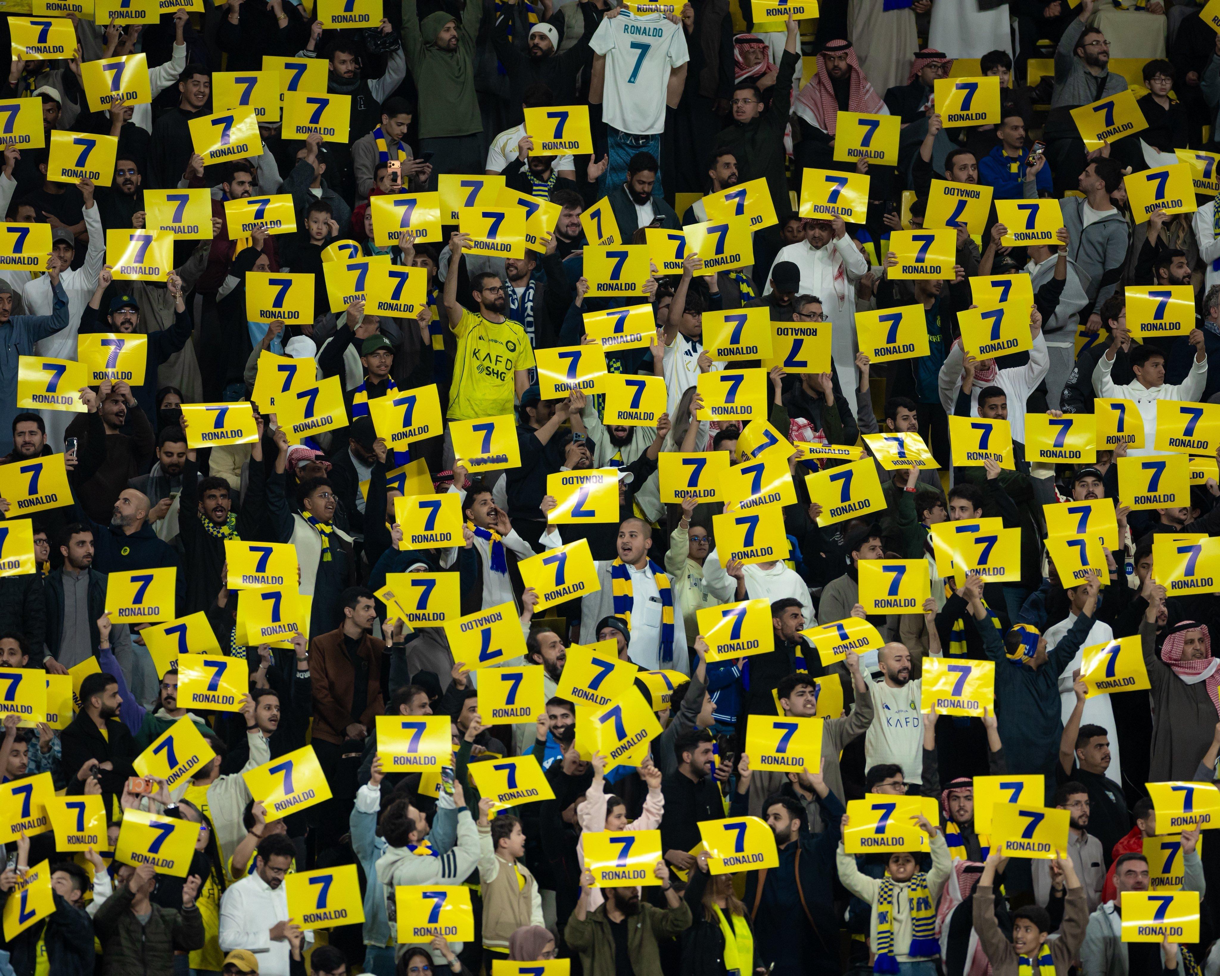 C罗c罗 利雅得胜利球迷的支持满场7号手幅