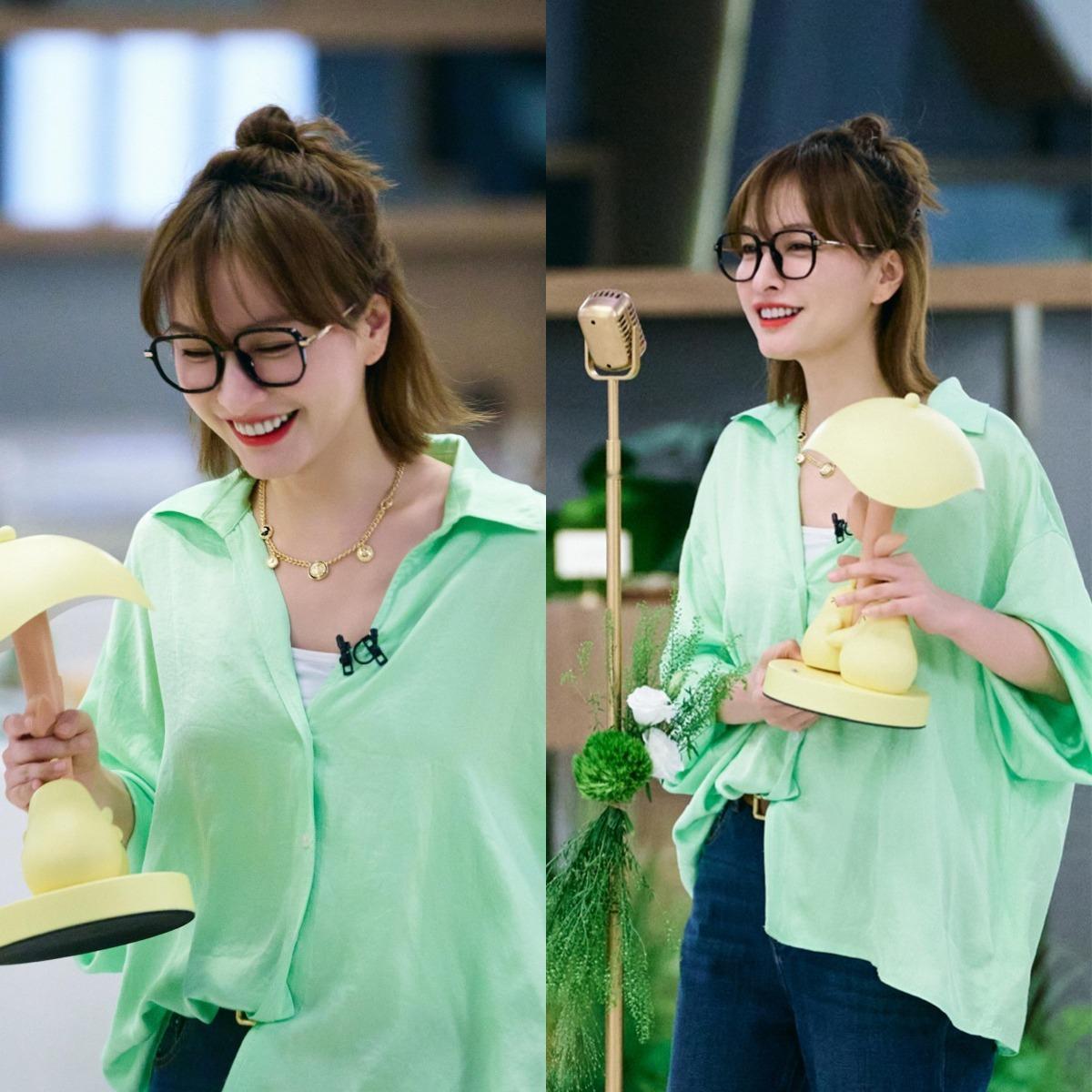 吴昕,绿色衬衣好有青春气息。吴昕