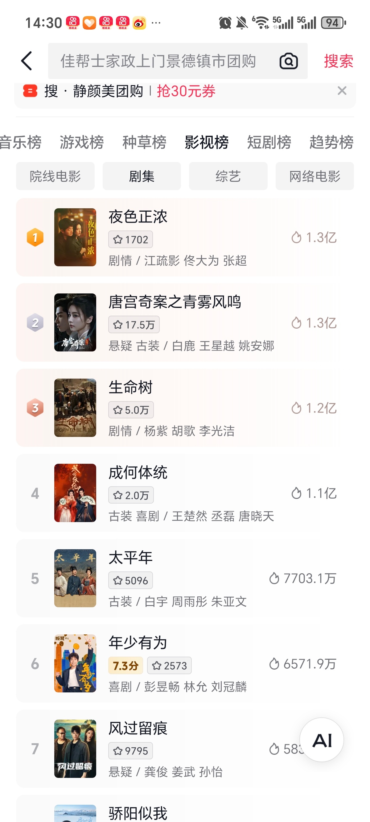 成何体统首日表现很不错百指11万 抖指560万 抖热度现在1.1亿,还能涨夸克指