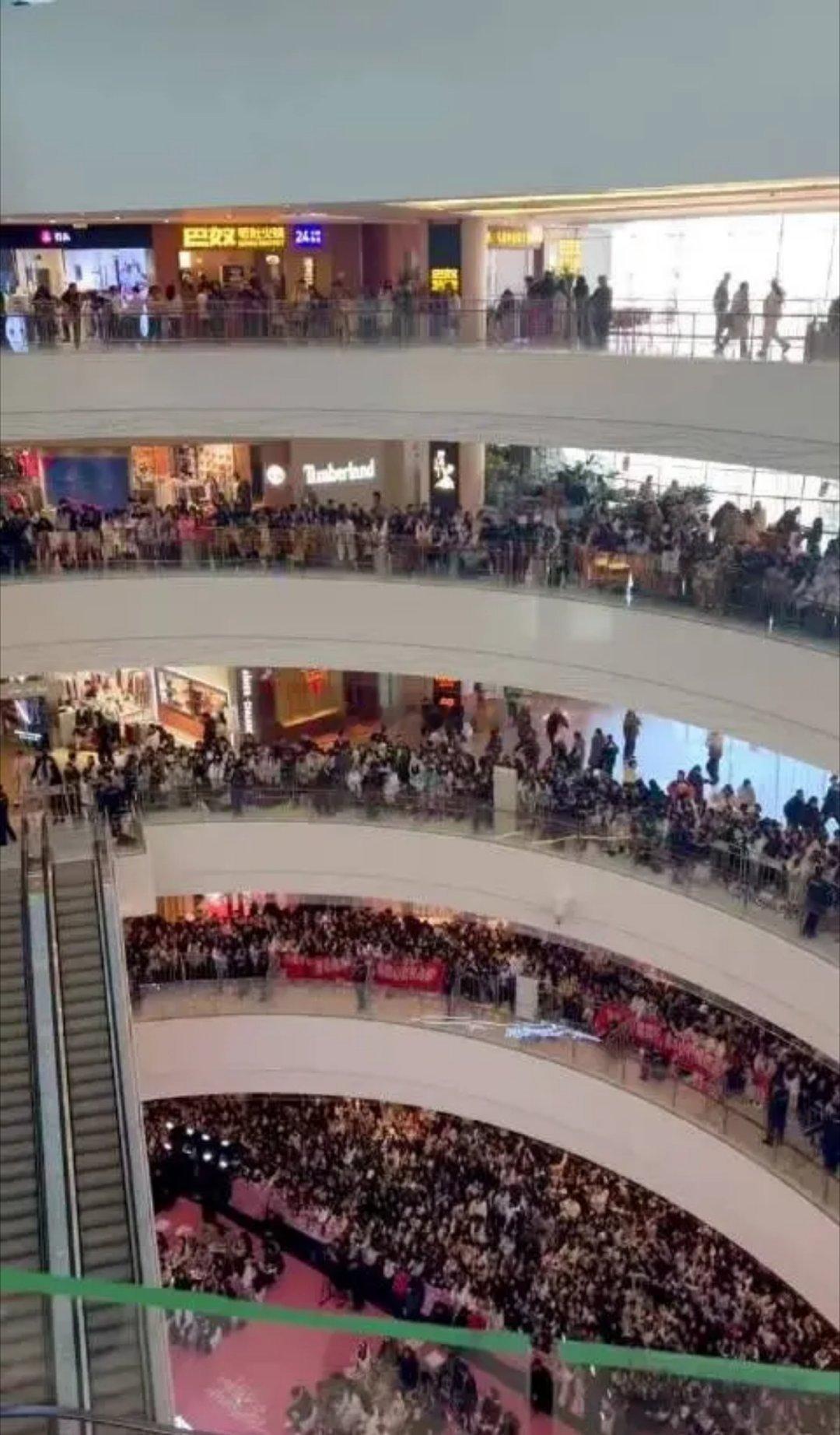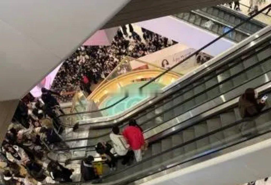 孟子义青岛线下活动人气爆棚!楼上楼下全是她的粉丝,她穿白色珍珠抹胸裙配大金项链,