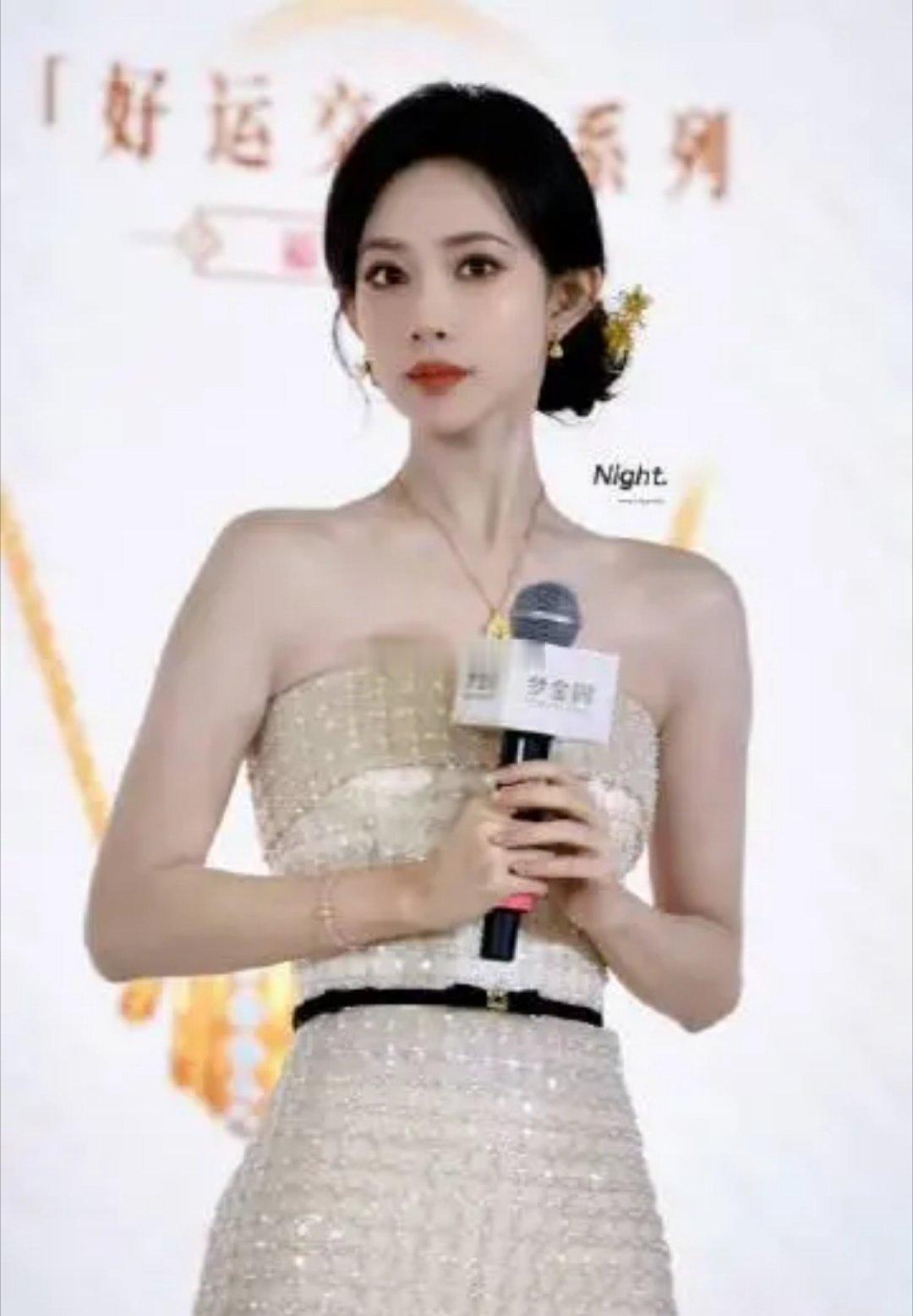 孟子义青岛线下活动人气爆棚!楼上楼下全是她的粉丝,她穿白色珍珠抹胸裙配大金项链,又美又贵气!