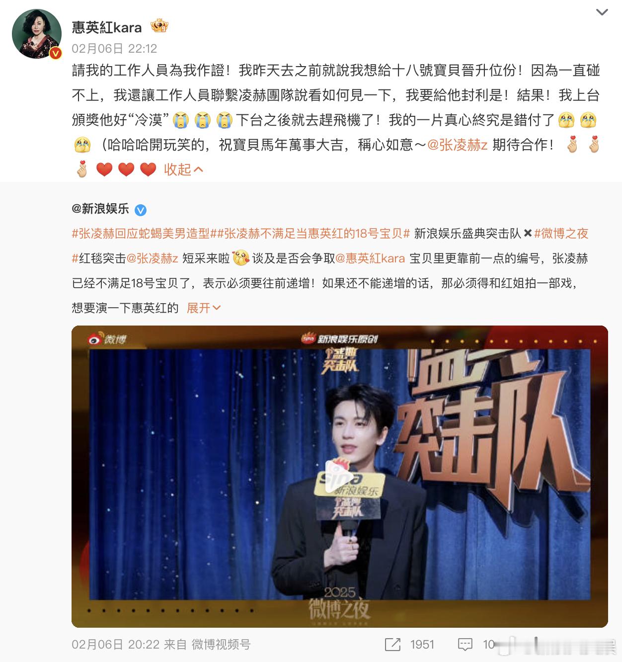 惠英红要给张凌赫晋升位份 太可爱了!张凌赫说不满足当惠英红的18号宝贝,红姐马上