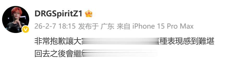 虎扑02月07日讯2026VCTCN启点赛败者组DRG不敌EDG,就此淘汰。赛后,SpiritZ1发文: