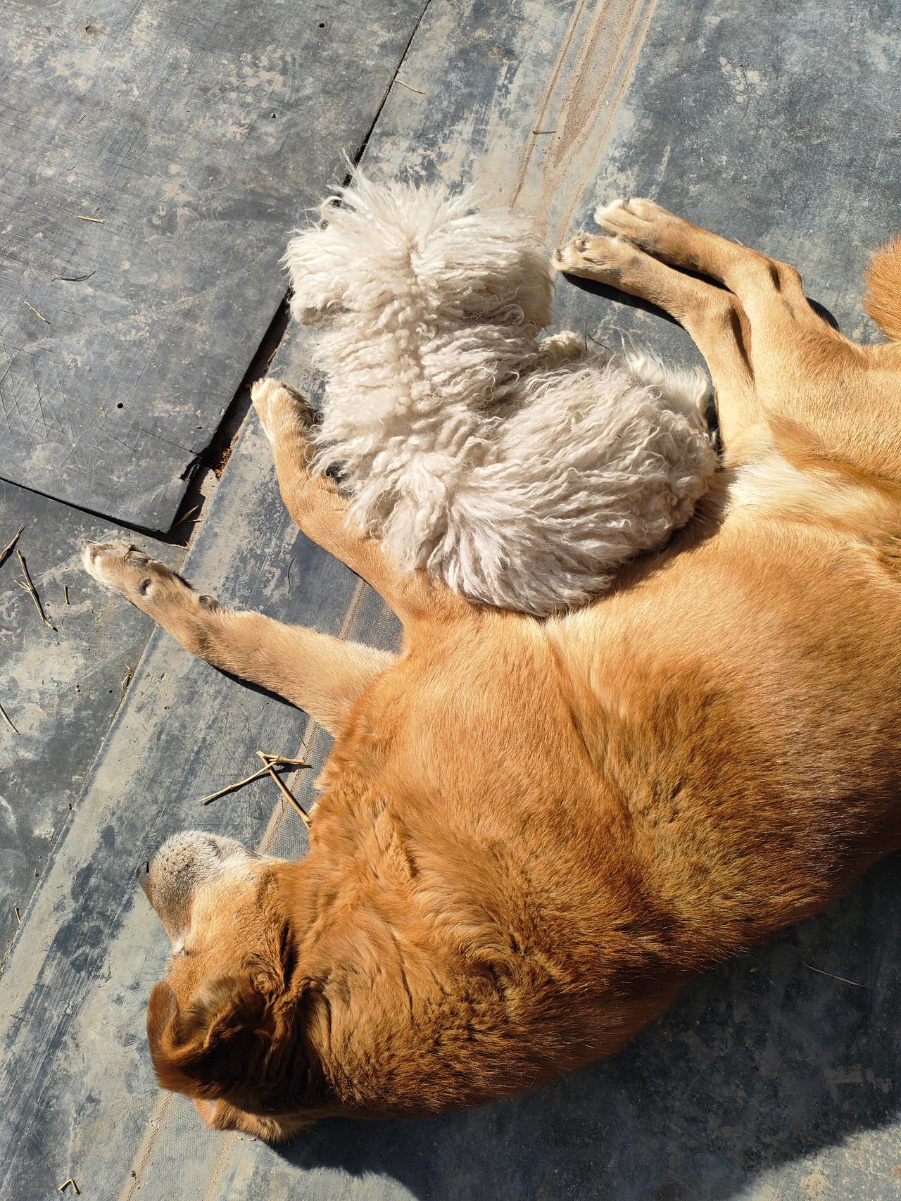 阳光在瓷砖上织网,大狗把慵懒摊成画布,小狗就着暖绒绒的底色,涂鸦关于陪伴的童话。 🐕 棕毛像融化的焦糖,裹着安静的午后,小白狗蹭过来时,空气里都飘着,软乎乎的甜。 🏠 瓷砖的纹路里,藏着光阴的细语,大狗与小狗依偎的模样,是家最温柔的注脚。