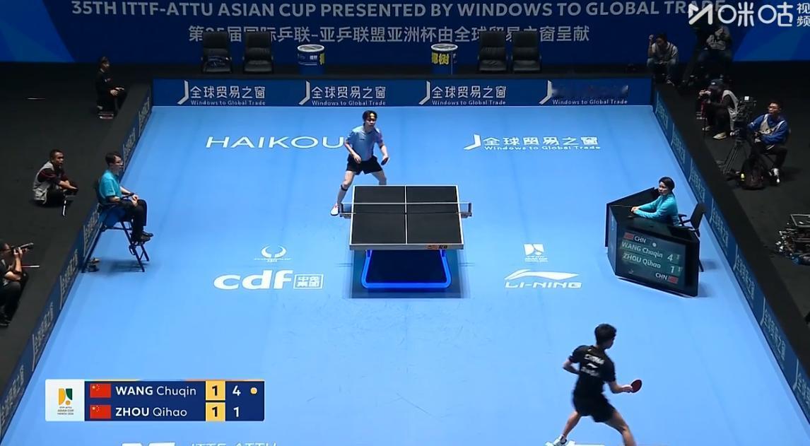 王楚钦遇到最大的挑战了! 周启豪不但手感好, 而且王楚钦远台高质量的球, 周启豪都有预判。 刘国正说: 两人太熟了, 从小打起来, 虽然国际大赛两人打得好, 但是队内赛打的很多, 而且两人还是山东魏桥队友, 非常熟悉。 所以王楚钦的进攻, 周启豪也能预判 两人前两局打平了, 第三局 王楚钦6:1开局 周启豪又追到了5:7 又追到了8:9, 最后王楚钦11:8拿下 太精彩了,太激动了。