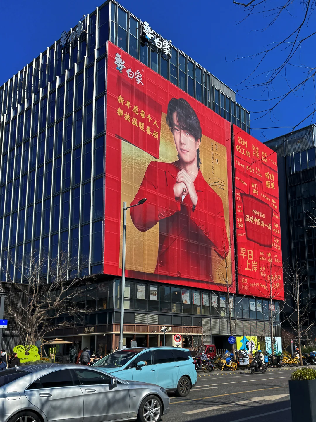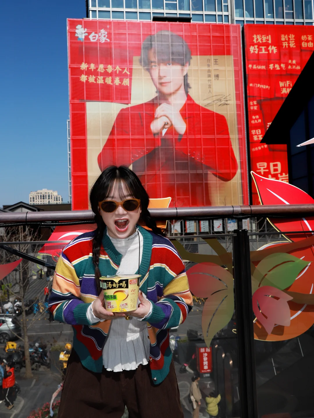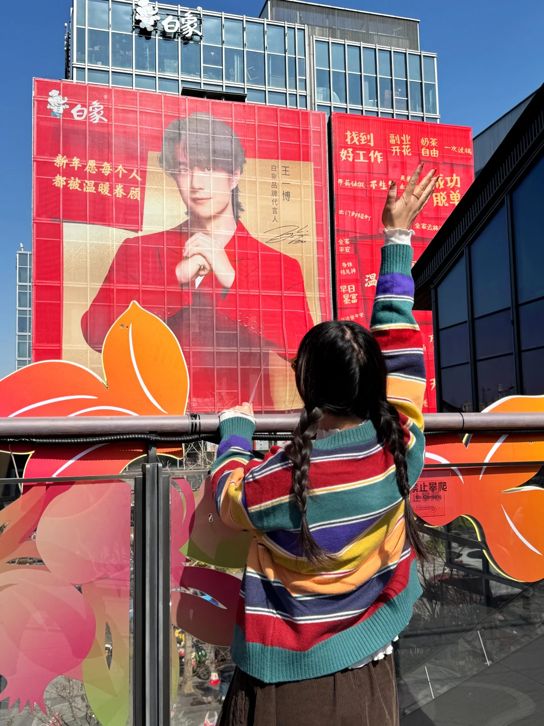 领取免费清香上完香,顺着石板路走2分钟就到白象心愿墙,红金配色的巨型画面超上镜,不管是站在天桥拍全景,还是凑近和一博海报比心同框,随手都是新年氛围感大片📷