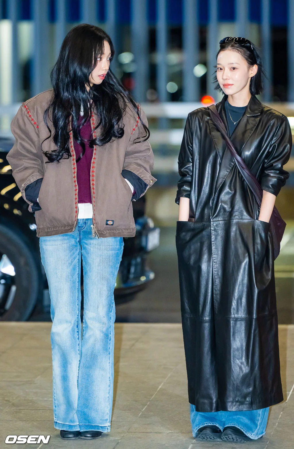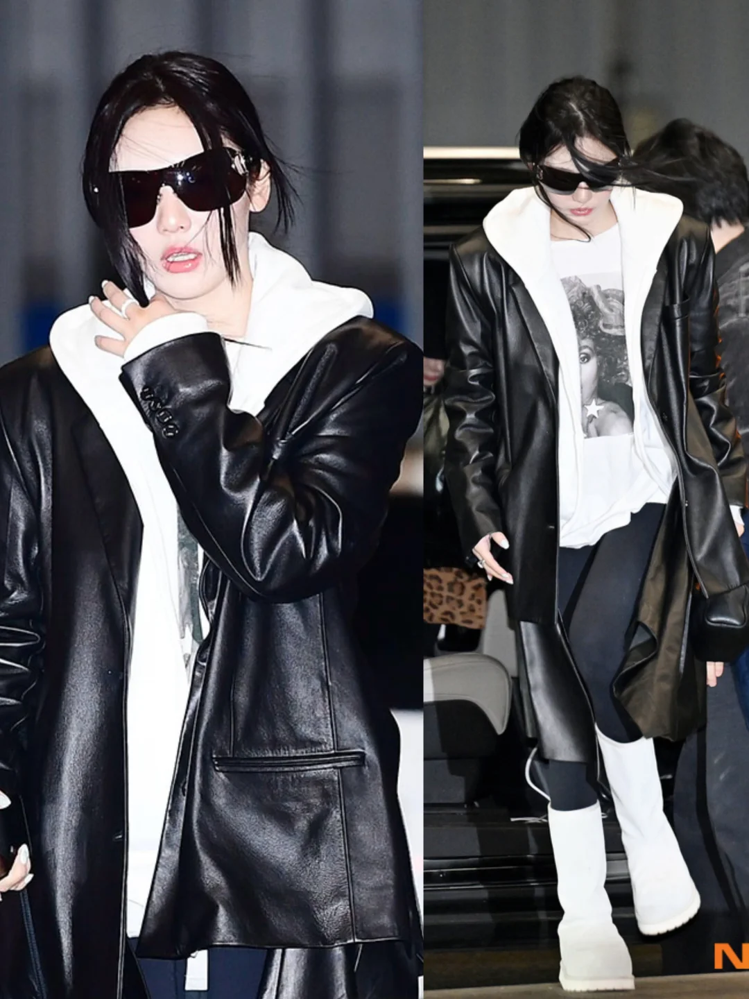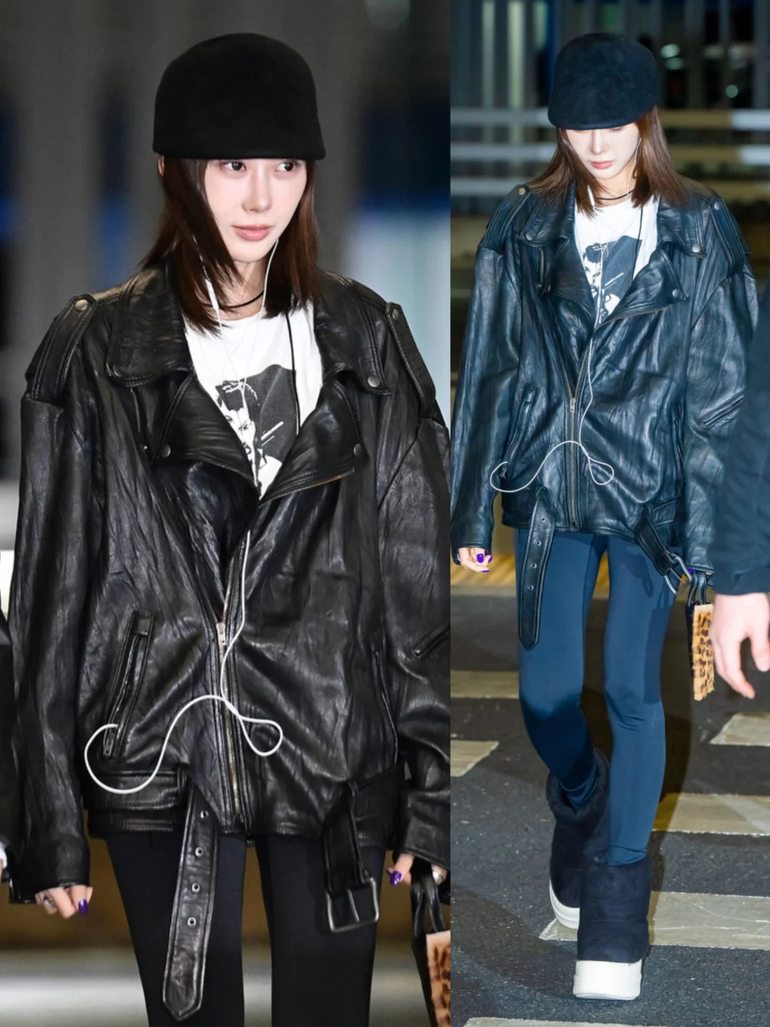 aespa今日机场街拍穿搭!姐儿几个保暖到位状态也不错! 宁宁 Winter giselle都穿了皮衣,karina则是夹克配牛仔裤!