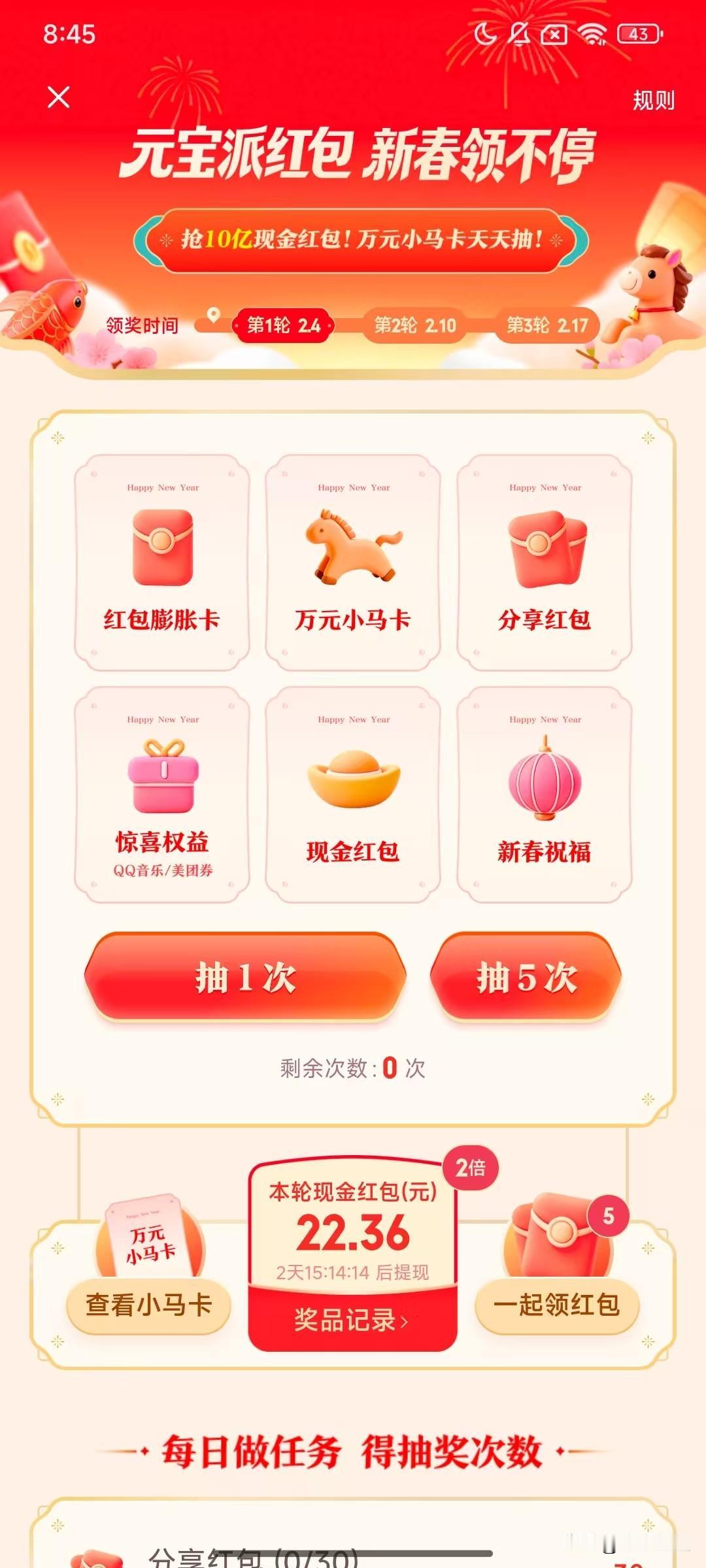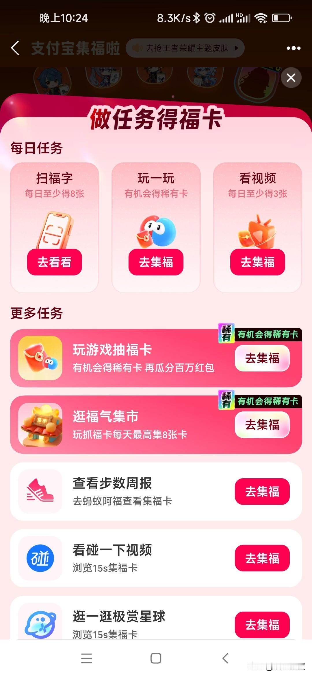 “对不起支付宝,这次我支持元宝” 大家千万别被今年的支付宝集福活动给带偏了,那么大个金主,撒个红包小气死了。一个链接接一个链接,每个板块都可以集福,都集了百十张了,还不见稀有福卡,就是集齐了也才1.68元。 要说这次还是元宝真诚一点,我把全家的手机都下了元宝,最多的一个手机开了29块多,最少的也有12块多。第一轮就几个任务一做,轻轻松松小一百了。 支付宝做了好几天,每天做了几个小时的任务,到现在才集齐了3套,到时最多也就分5.4元。都不够流量钱。
