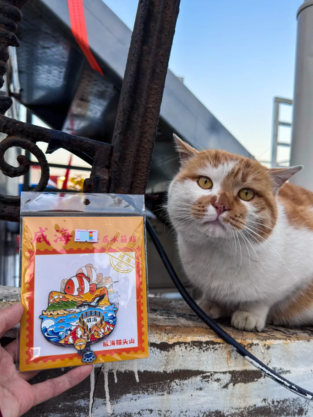 偶遇白天火炬八街胖橘营业。 邀请与猫头山冰箱贴合影。