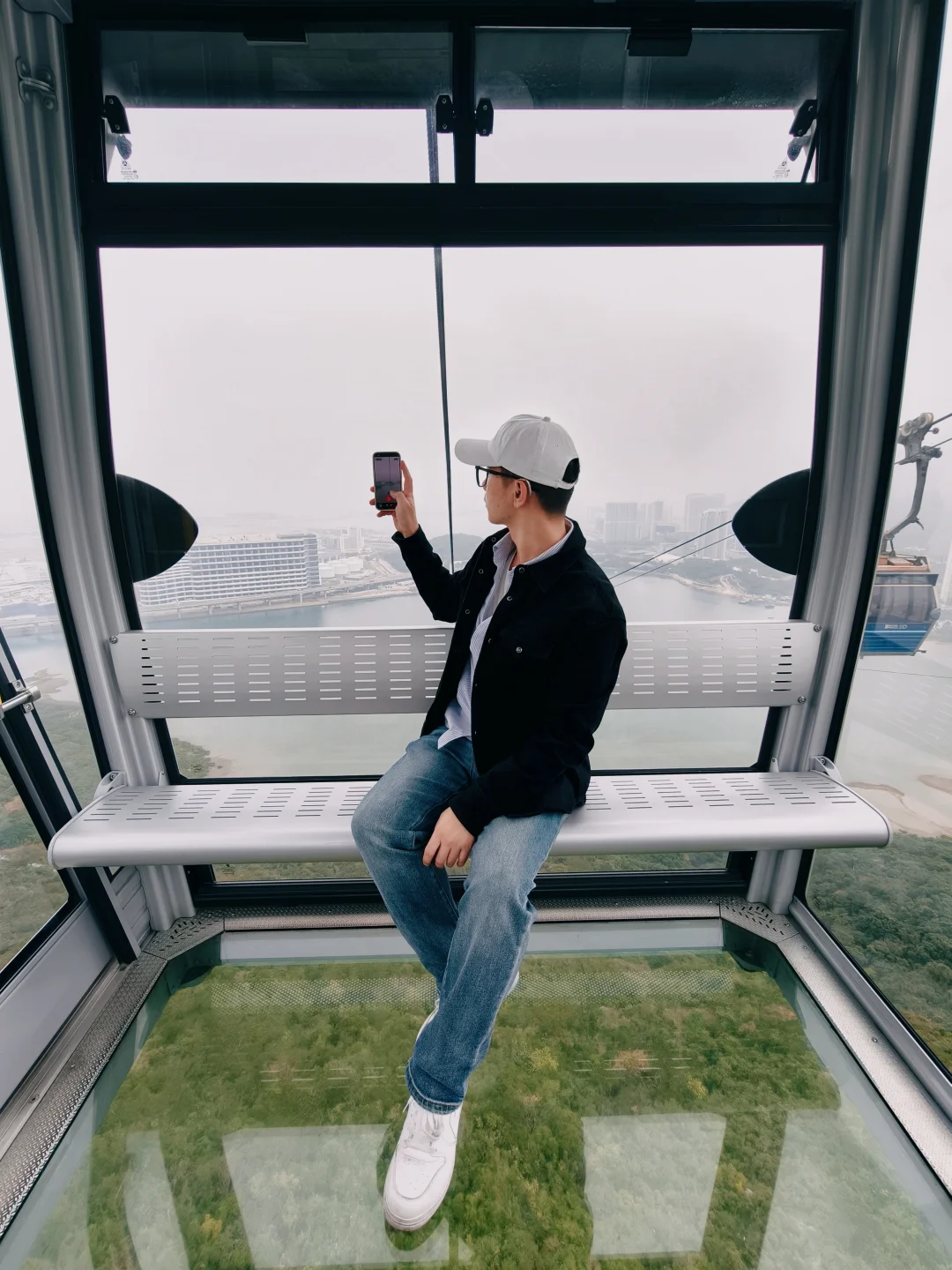 👉🏻记得选全景缆车 ,当缆车缓缓离开站台,整个世界在你脚下展开的感觉太震撼了!脚下是透明的,像在空中漫步,碧蓝的东涌湾、翠绿的北大屿山、远处起降的飞机还有天坛大佛慢慢出现在视线里,全程20多分钟根本看不够…