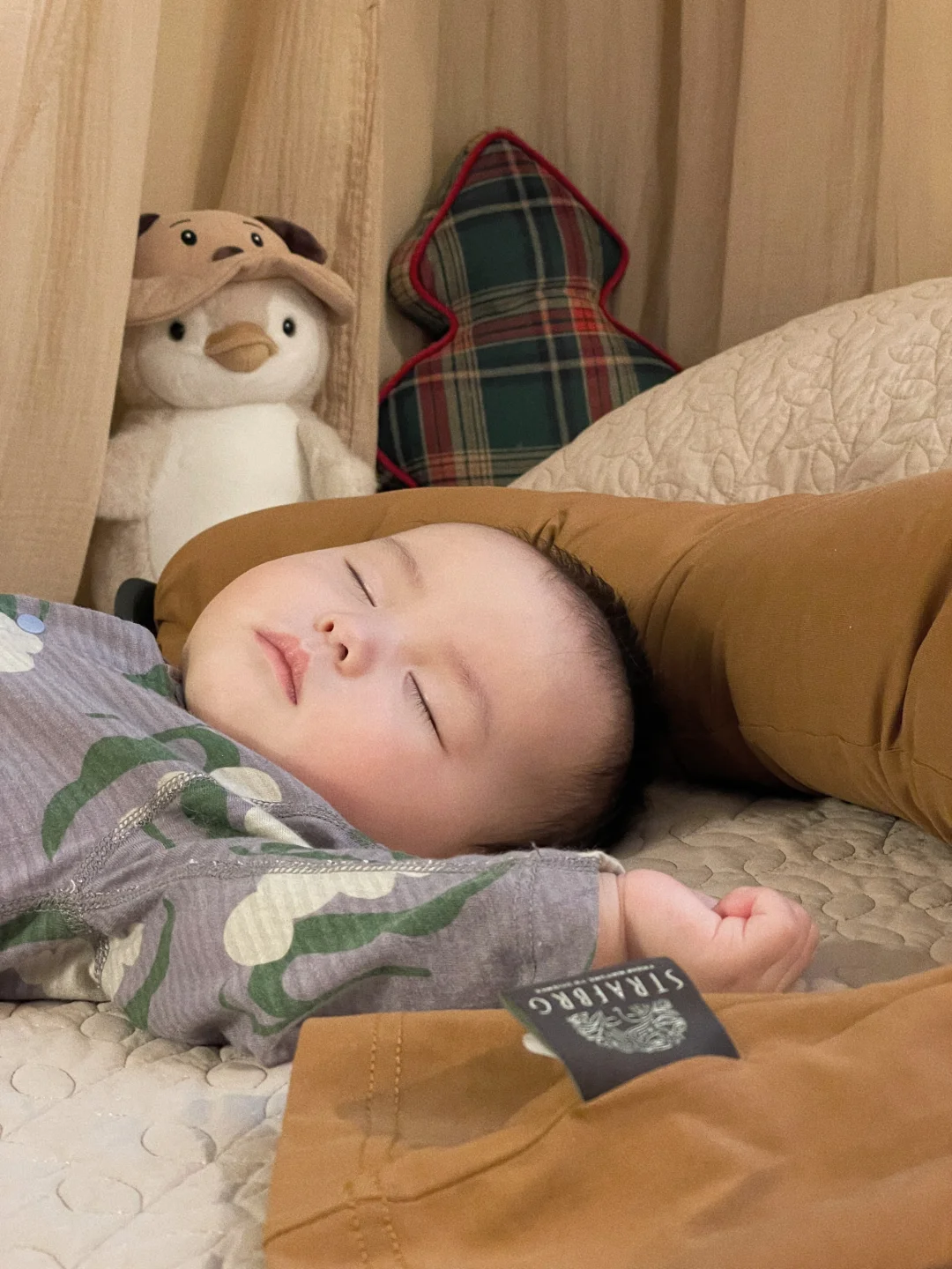 - 老母亲心都要化啦 小时候最希望的就是有属于自己的卧室 现在我把它送给我的崽崽 有她喜欢的玩具 可以抱着睡的安抚枕 绘本架放上她喜欢的画本 是属于她自己的秘密基地 8月龄的满崽越来越厉害啦 已经可以坐的很直 这样静静看着她玩耍 就感觉很幸福 玩累了就抱着糖果枕睡 小脚丫搭在枕头上好可爱 听说夹抱侧睡还能保护髋关节 睡得乖乖的好幸福 我的小人儿呀 慢点长大吧