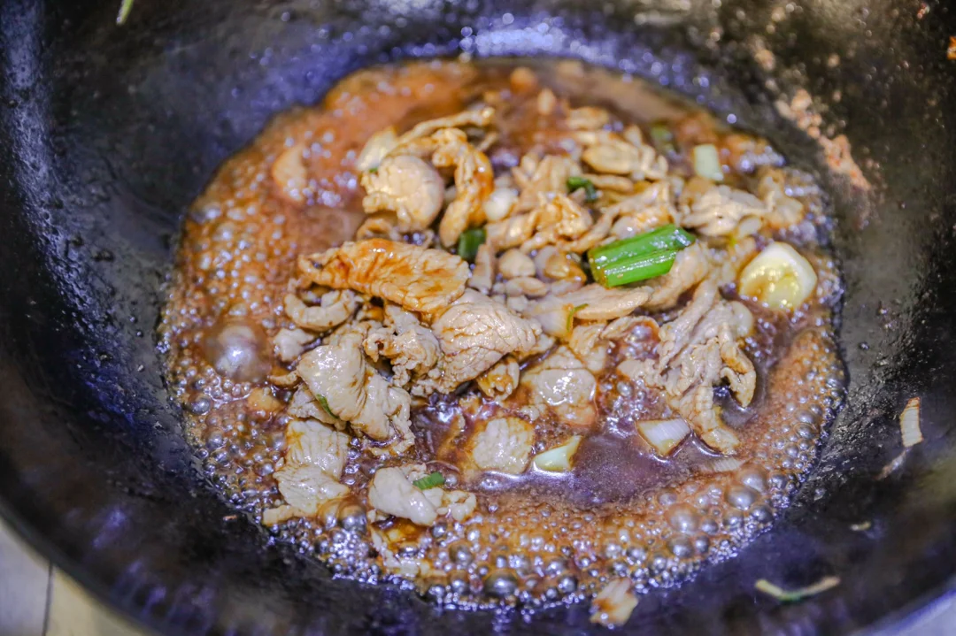 6.如果时间到了之后,还有很多汤汁的话,稍微开大火一些,用筷子上下来回翻,让汤汁彻底吸收干净即可。