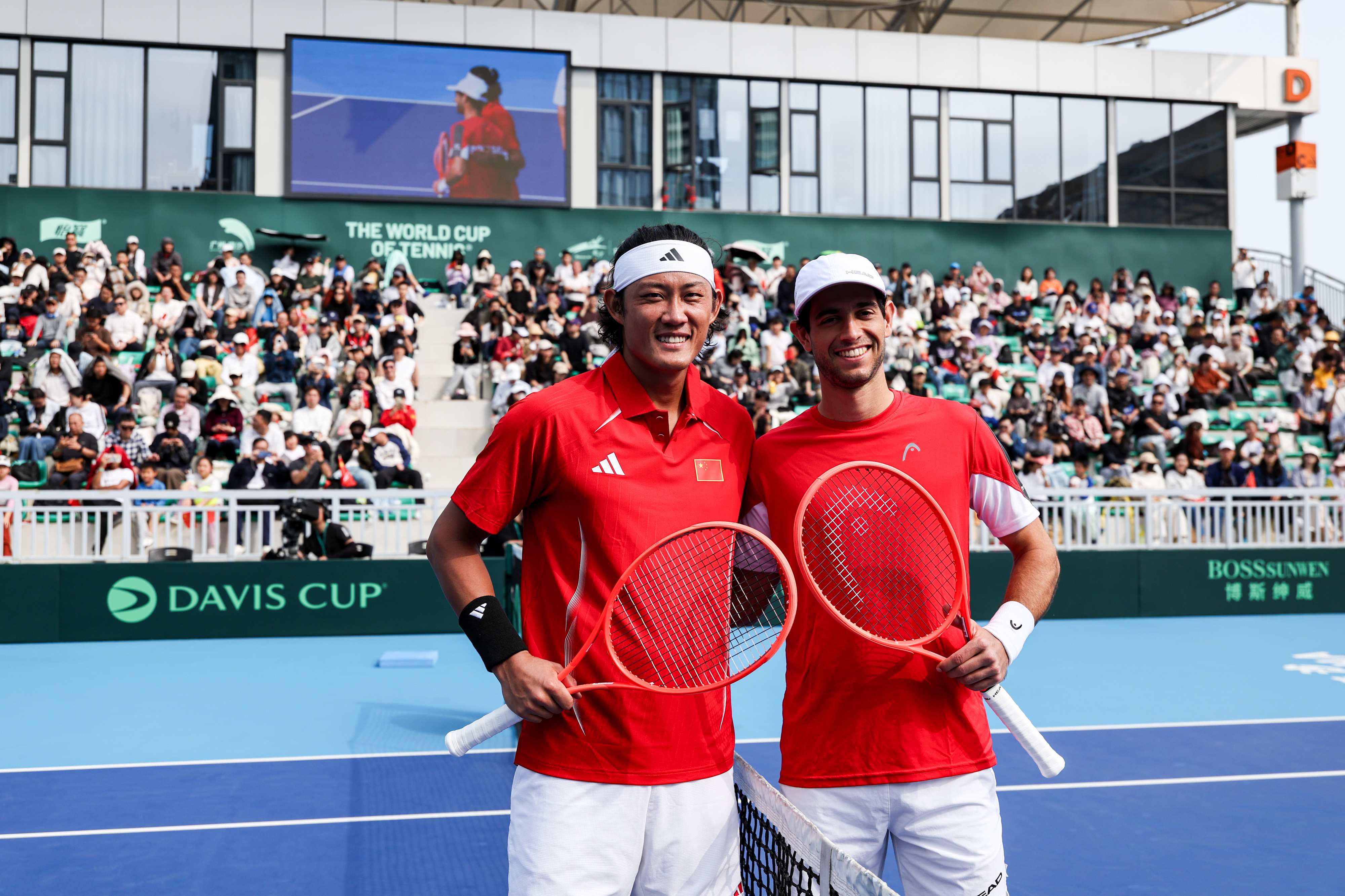 戴维斯杯中国vs葡萄牙🆕🐝!张之臻7-5、6-4击败博尔热斯,中国队3-1力克葡萄牙,首次跻身世界一组!恭喜中国队的小伙子们👍