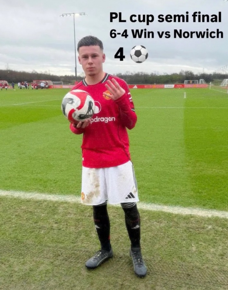 直播吧2月8日讯据《太阳报》报道,在曼联提供职业合同几天后,俱乐部传奇射手鲁尼之子凯·鲁尼单场比赛上演了大四喜。这是一场曼联U16对阵诺维奇的比赛,最终曼联U16以6-4的比分取胜。