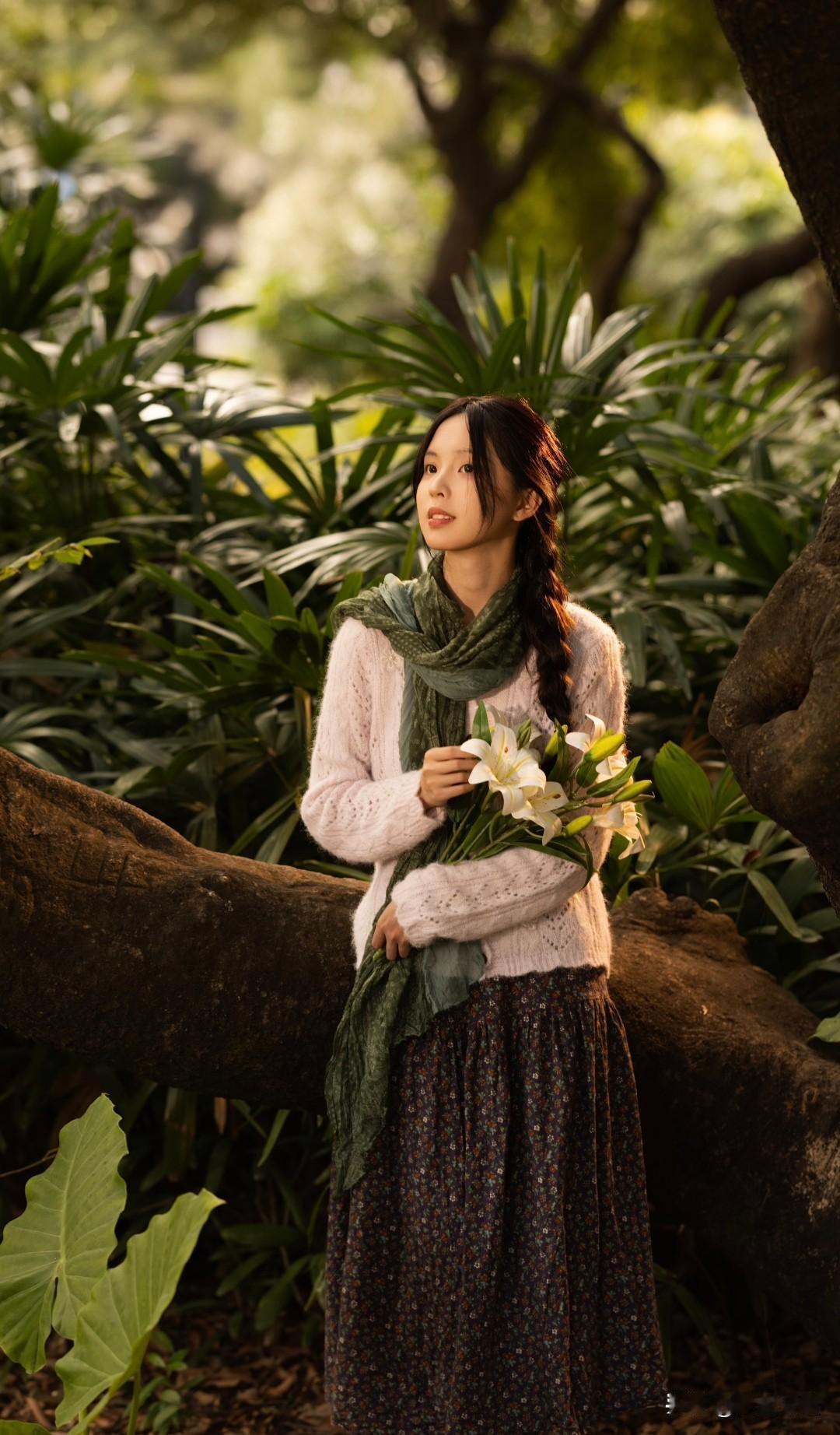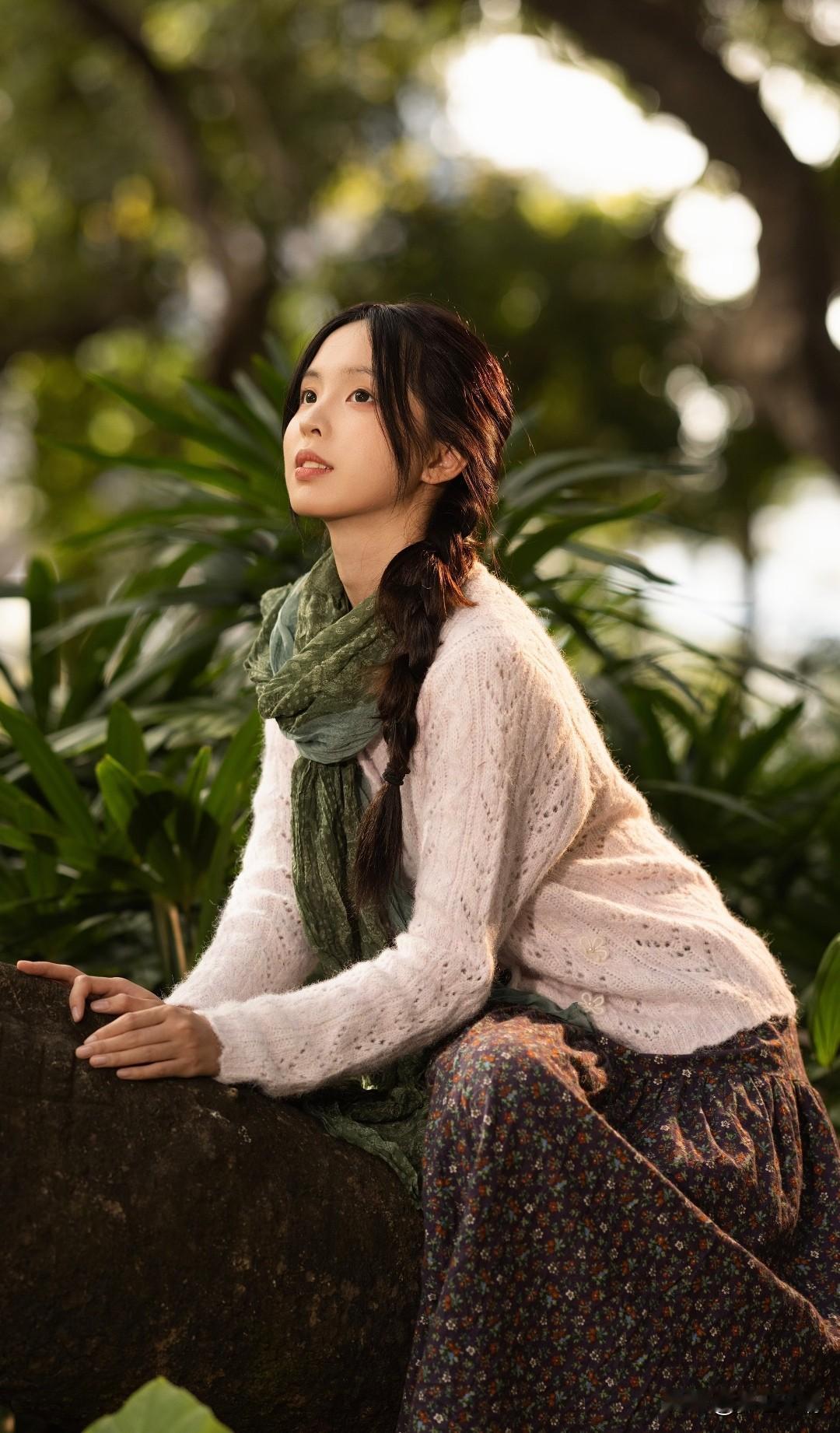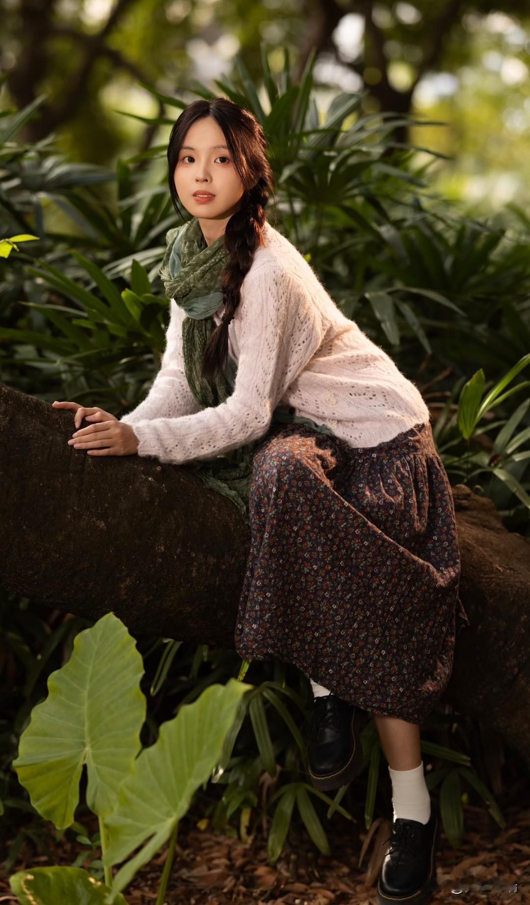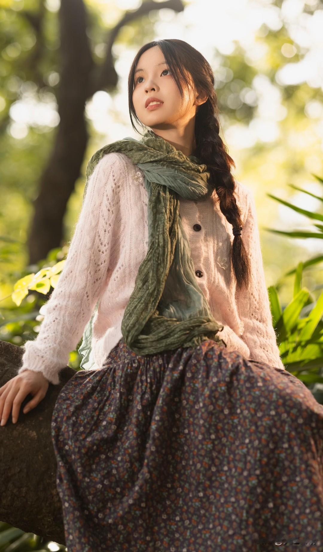 梦幻森林中的少女,吹着泡泡,享受宁静时光。