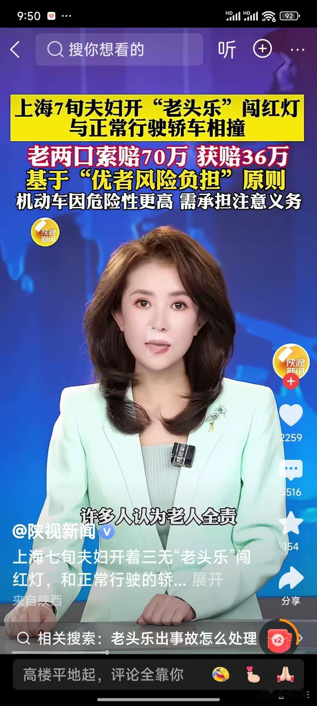 谁弱谁有理?上海老头乐闯红灯被撞,居然还获赔了36万! 请问有关部
